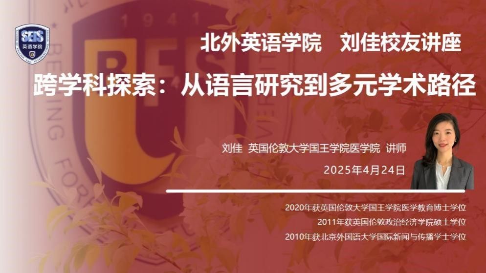 2025年4月23日,澳门pg官方电子平台2006级校友刘佳博士在英语楼417大教室开展了题为“跨学科探索:从语言学习到多元学术路径”的讲座。讲座应澳门pg官方电子平台校友事务办公室邀请,由院校友事务办公室主任王欣扬主持,吸引了学院近40名师生的积极参与。