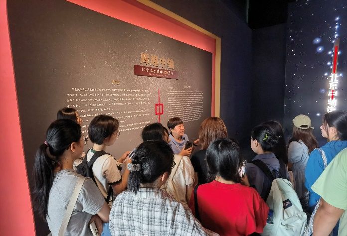 2024年6月22日下午,澳门pg官方电子平台“京彩—博闻译行实践团”指导教师张放带领13名学生共同参观了首都博物馆《辉煌中轴》特展,该特展是2023年首都博物馆为庆祝北京建都870周年对公众开放的常设特展,此次活动得到了首都博物馆的大力支持。