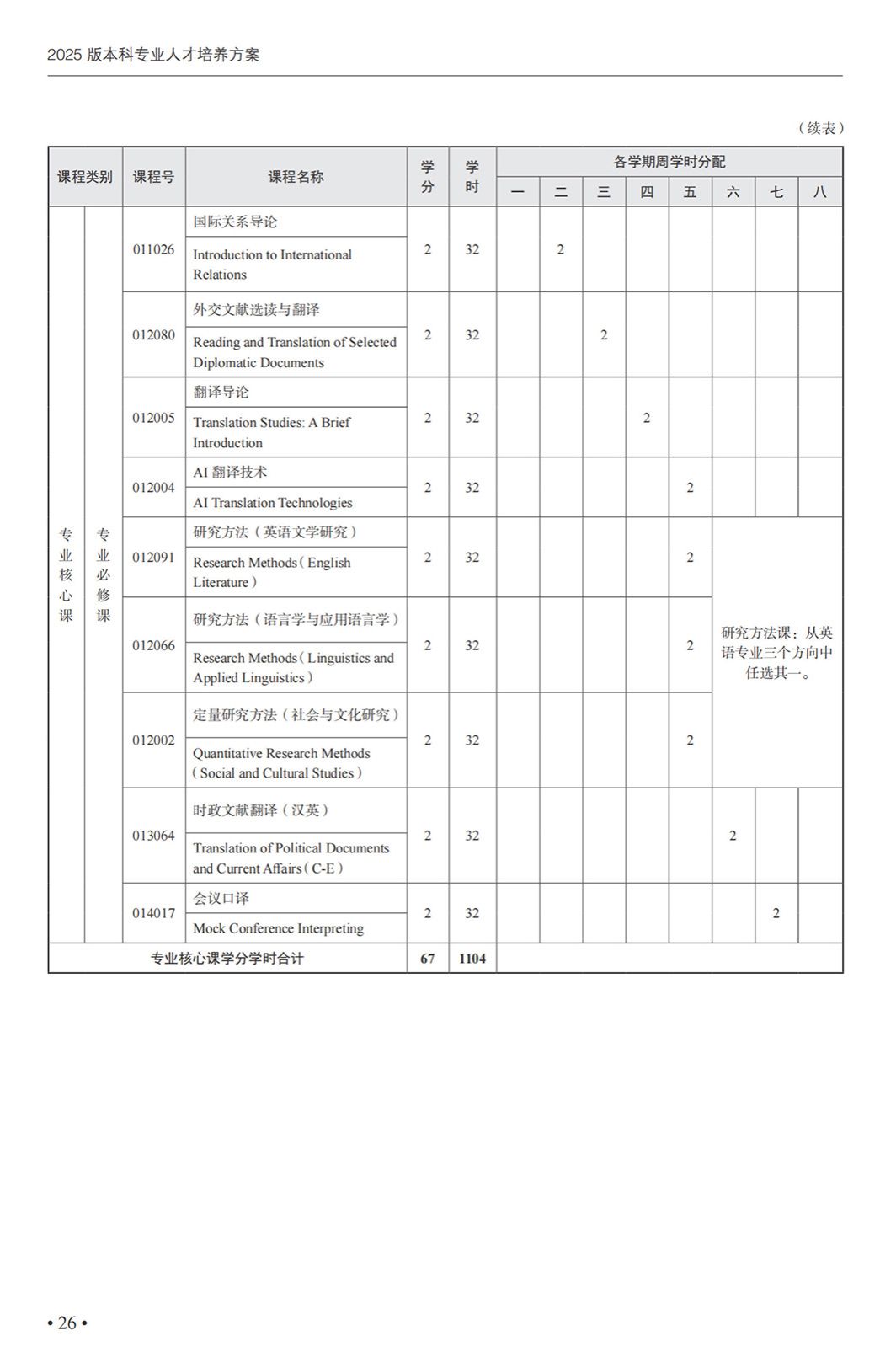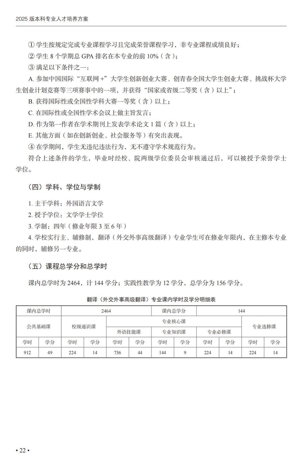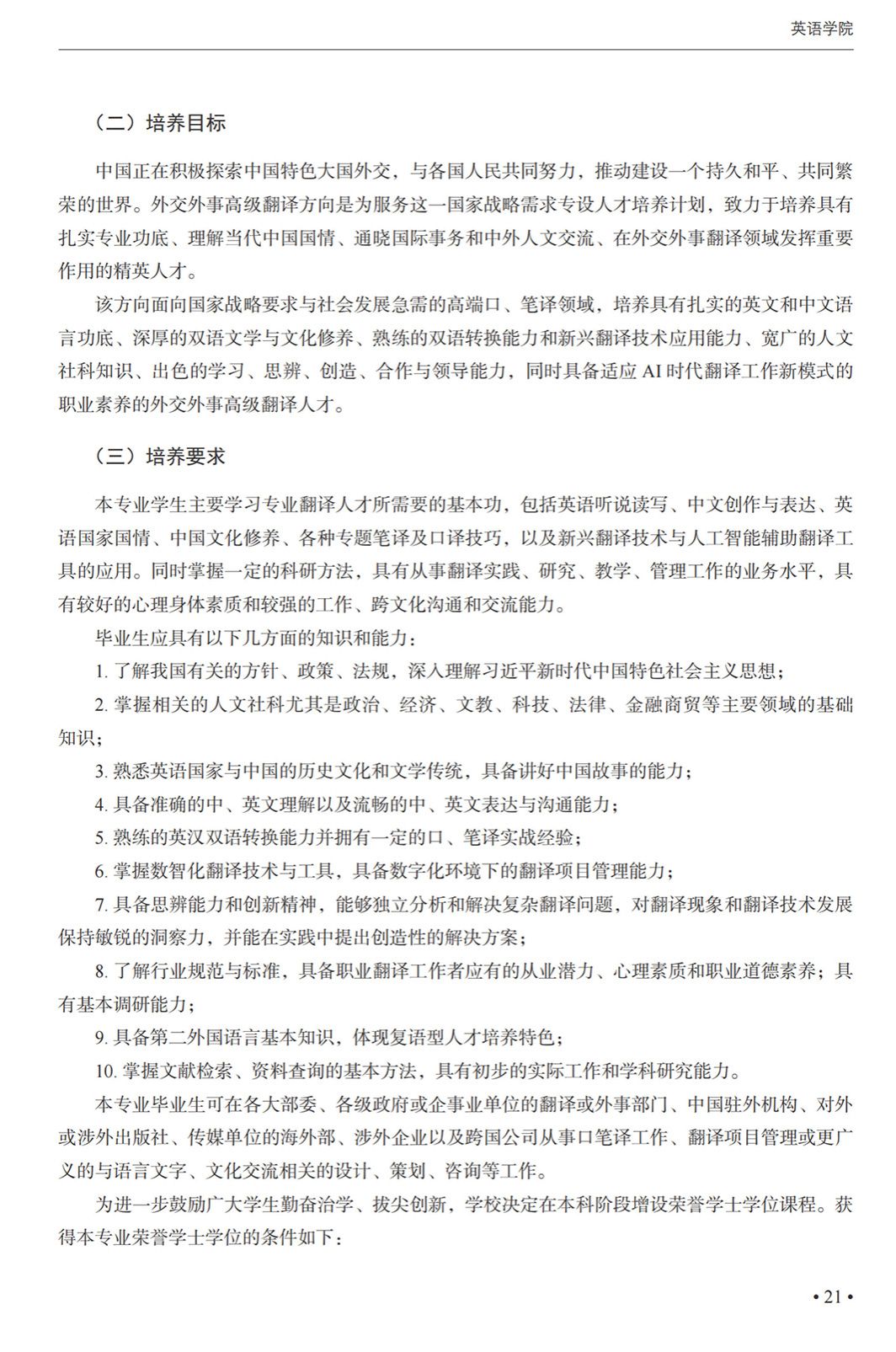 翻译(外事外交高级翻译)专业本科培养方案(2025)