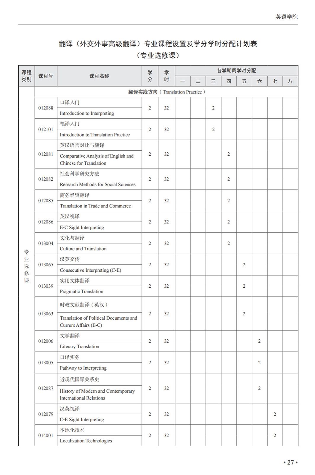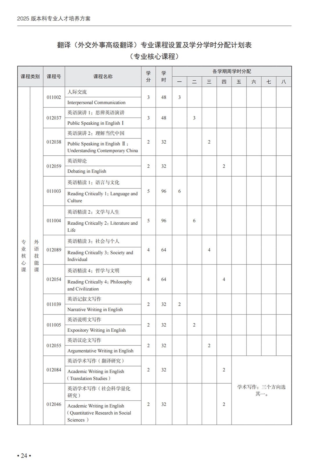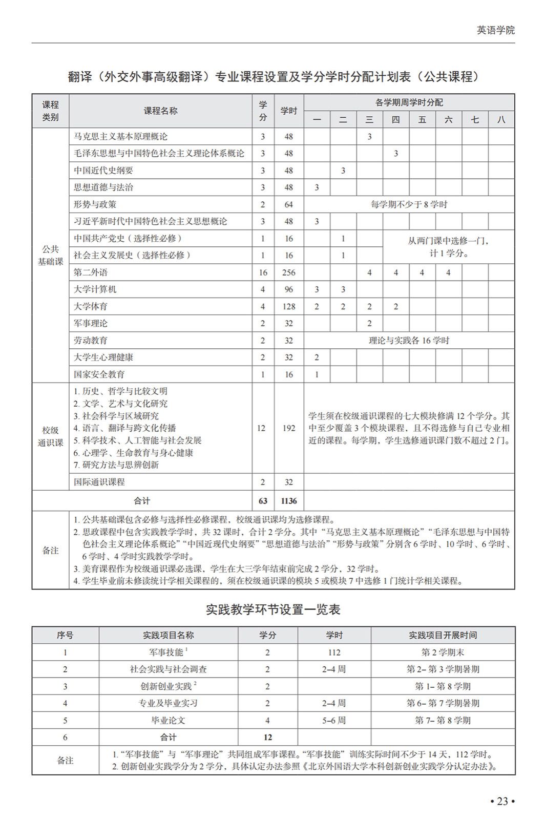 翻译(外事外交高级翻译)专业本科培养方案(2025)