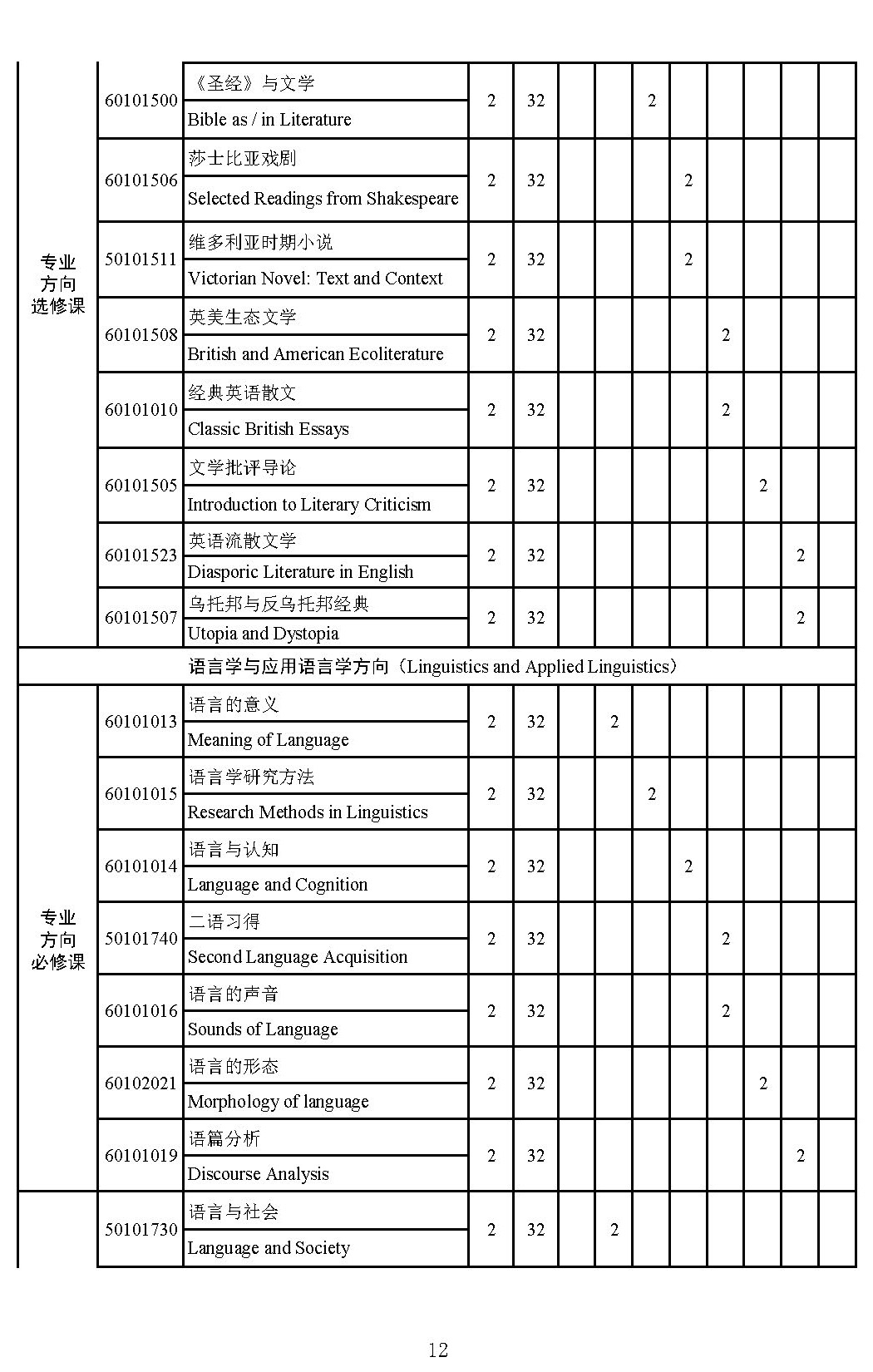 英语文学方向师资