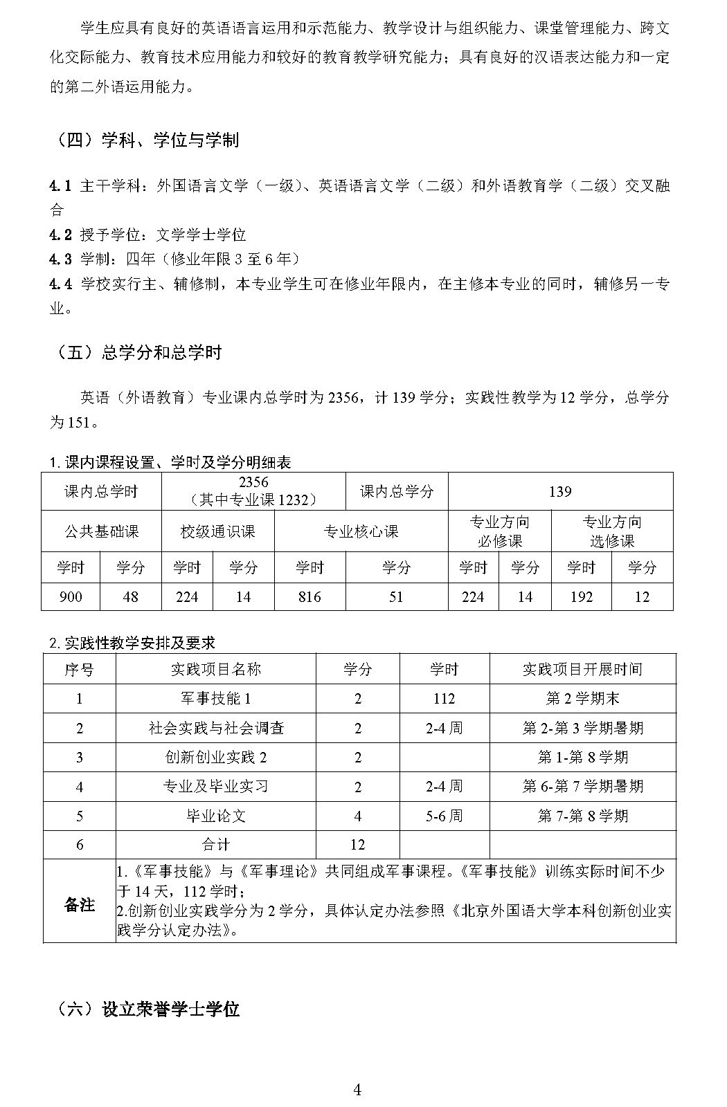 澳门pg官方电子平台英语(外语教育)专业本科培养方案(2024)