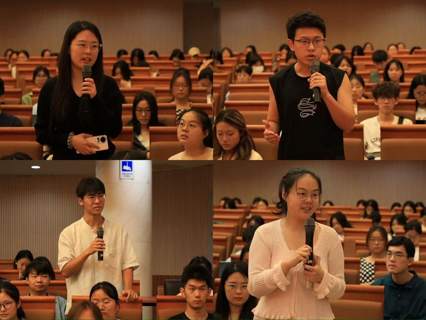 互动环节中,现场同学们踊跃发言,分享自己的心得体会。2025级本科生杨博文从“人民的力量”视角出发,结合毛主席《论持久战》,阐释了人民群众在抗战与中国革命进程中的根本作用,深化了对人民史观的理解。2023级本科生宋承润表达了对李林、陆士嘉等先辈无私奉献的崇高敬意,强调学习抗战历史对当代青年坚定信念、砥砺前行的重要意义,立志提升自我、报效国家。研究生MTI笔译党支部刘敏、潘纪钊则聚焦赵一曼“一个粗瓷大碗”的故事,体会到革命先辈“小我”与“大我”的崇高抉择及对人民的深切关怀,呼吁青年一代要将先辈精神内化于心、外化于行。