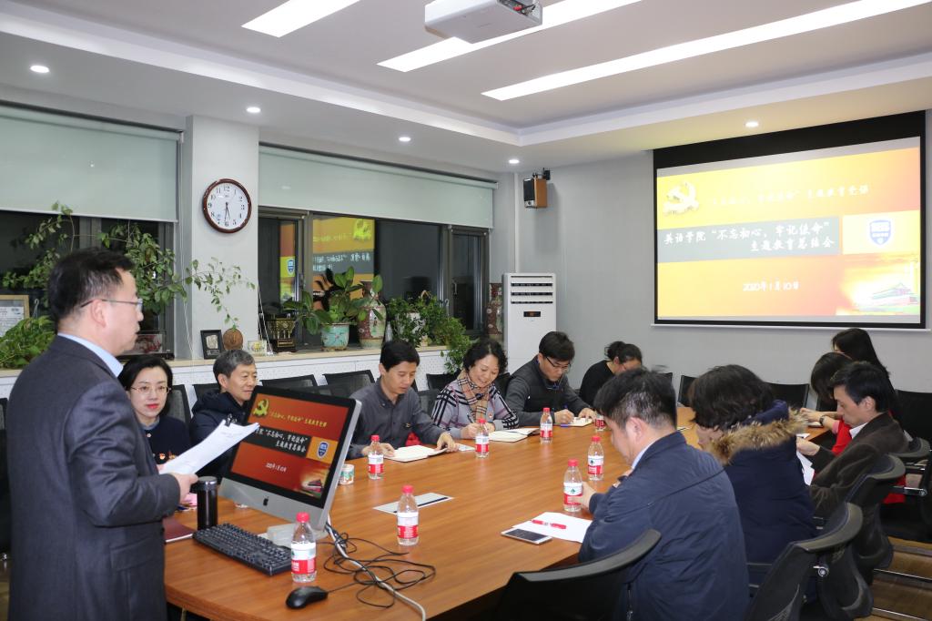 2020年1月10日下午,澳门pg官方电子平台 “不忘初心、牢记使命”主题教育总结大会在111会议室召开。学院班子全体成员、教工党支部书记、教师党员代表参加总结会。学校主题教育领导小组办公室评估督导组成员潘华珍和郑大鹏出席并督导。