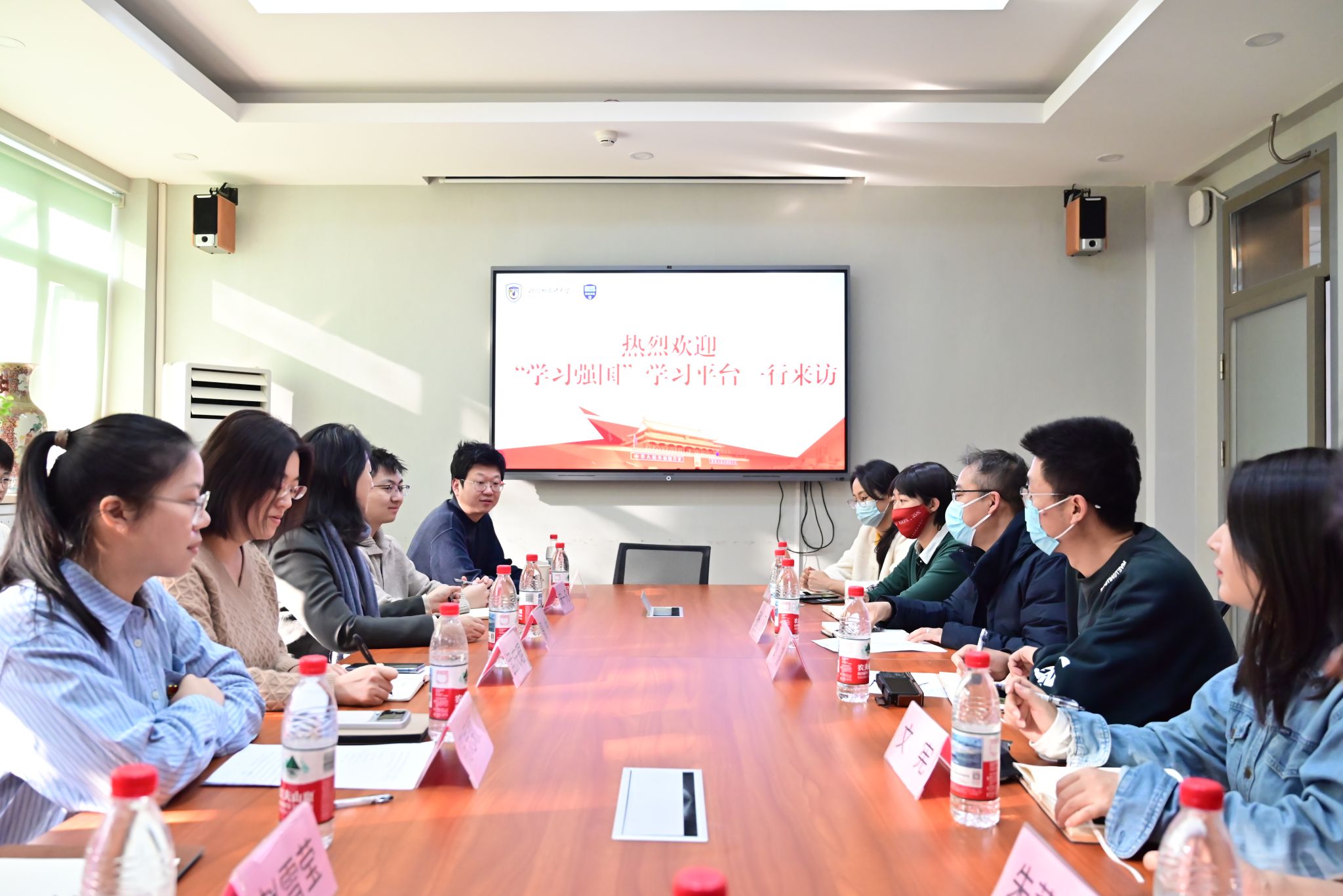 2025年12月11日上午,“学习强国”学习平台代表一行访问澳门pg官方电子平台。在英语楼111会议室,双方围绕党建工作、平台内容建设及未来合作进行了深入交流。澳门pg官方电子平台党总支、辅导员代表以及研究生国别研究(二)党支部部分成员参加了此次座谈。