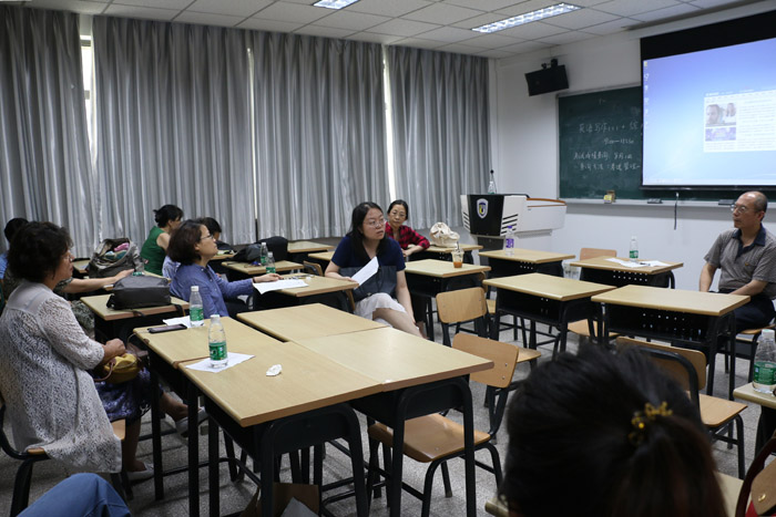 ——7月5日下午,研讨会又组织全院教师进行了分组讨论,议题分别为“语音和写作课的教学重点和方法”、“教学评价标准执行中的困难和建议”、“语言技能课和学科方向课工作量调整”、“何谓高层次人才,英语语言能力应该达到什么水平”等。