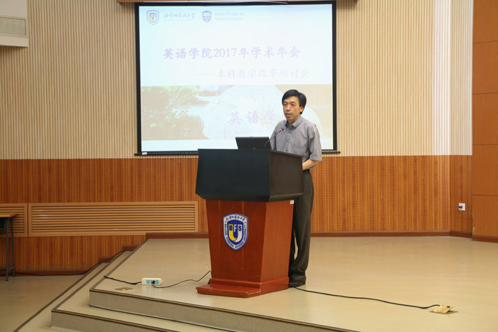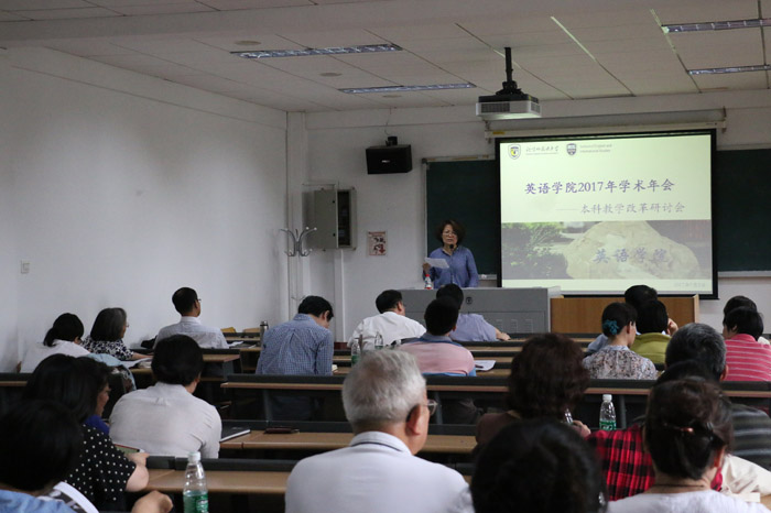 ——澳门pg官方电子平台主管教学的副院长张莲教授的发言题目为“澳门pg官方电子平台本科教学改革:现状、问题与思考”。她比较了澳门pg官方电子平台2007、2012、2016年本科培养方案,认为技能课在澳门pg官方电子平台的课程设置中并没有受到忽视,而是在近两年内有所加强。澳门pg官方电子平台的本科教学改革与世界上英语教学的改革探索遥相呼应,顺应了世界英语教学改革的潮流。