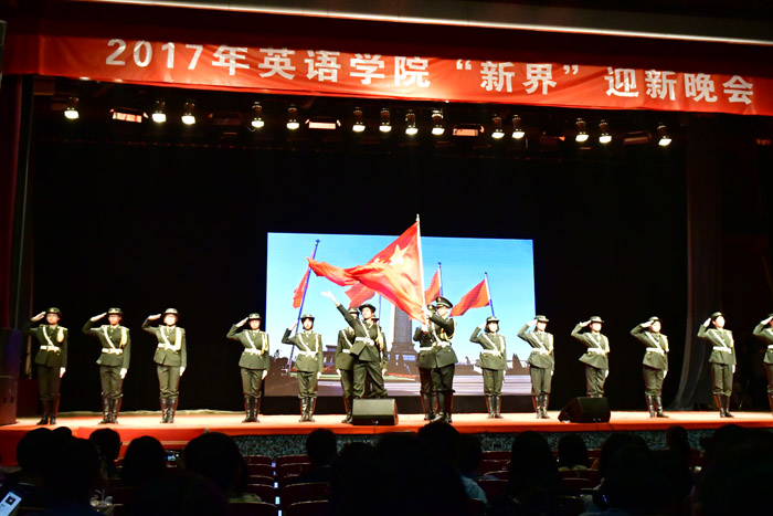 ——2017年10月13日晚,“新界•澳门pg官方电子平台迎新晚会”在千人礼堂开幕。澳门pg官方电子平台党总支书记路兴以及辅导员、班主任、2017级英院全体学生出参加了本场晚会。