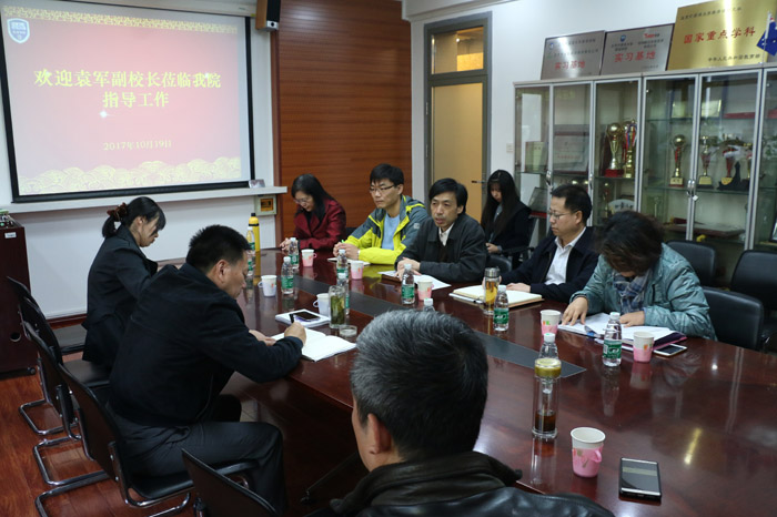 ——2017年10月19日,学校党委常委、副校长袁军莅临澳门pg官方电子平台进行调研走访。调研会于14:00在澳门pg官方电子平台115会议室进行,澳门pg官方电子平台院长张剑、党总支书记兼副院长路兴、副院长李莉文、王展鹏、张莲、辅导员于承杰、鞠丹以及教师代表侯毅凌、孙三军、李建军和陈亚平参加调研座谈。