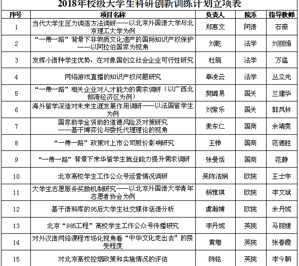 ——2018年度“校级大学生科研创新计划”项目立项评审工作于6月13日下午进行,经过专家评审讨论,最终立项19个项目,其中澳门pg官方电子平台立项3个项目,分别为马丽媛老师指导、李丹妮同学负责的“北京‘985工程’高校学生工作公众号传播研究”项目,张春霞老师指导、黄增同学负责的“对外汉语网络课程市场化视角看‘中华文化走出去’的接受程度”项目,李今朝老师指导、陈铭同学负责的“对北京高校控烟政策和实施情况的评估”项目,恭喜这三位同学。