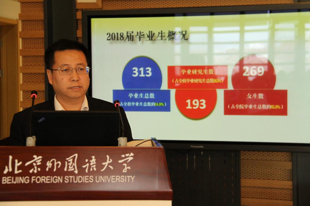 会议发布了《北京外国语大学2018年就业质量报告》,就业创业中心副主任兰建华汇报了2018届毕业生就业创业工作情况,介绍了2019届就业创业的趋势研判和工作思路。