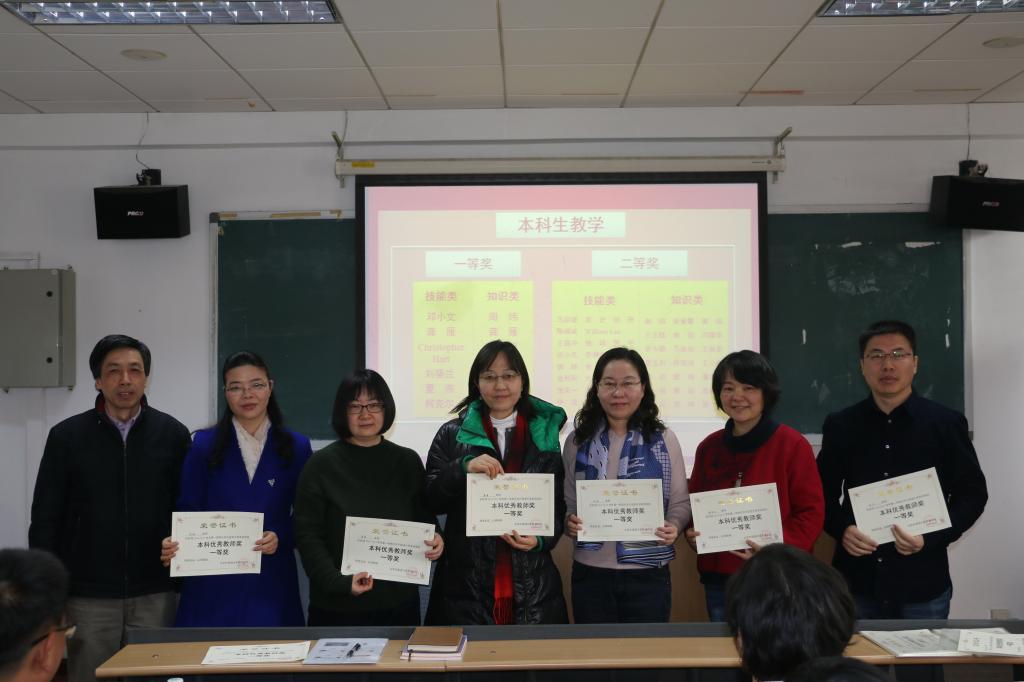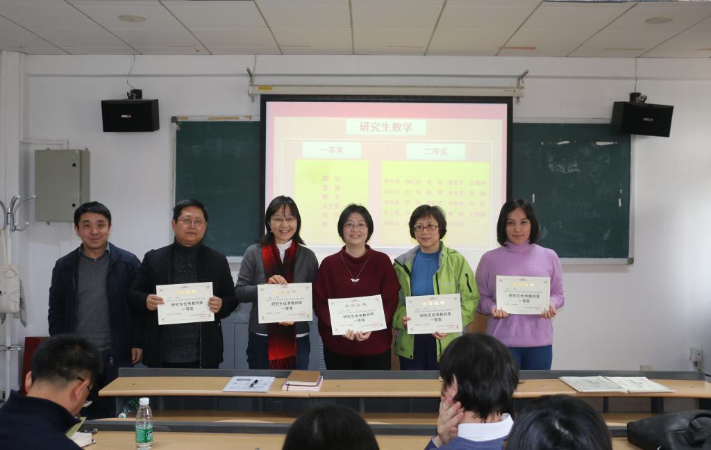 会议最后,颁发了2018-2019学年第一学期 “本科生教学优秀奖”、“研究生教学优秀奖” 、“同等学力课程研修班教学优秀奖”、“预科班教学优秀奖”及“优秀管理工作者”等奖项。
