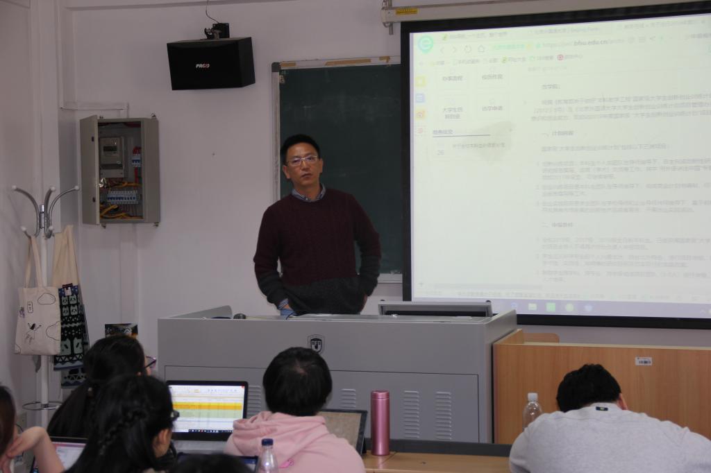 2月27日周三下午,在澳门pg官方电子平台417教室召开2019年大学生创新创业训练计划项目申报说明会。党总支书记路兴、副院长谢韬、辅导员于承杰以及有意申报项目的学生30余人参加。