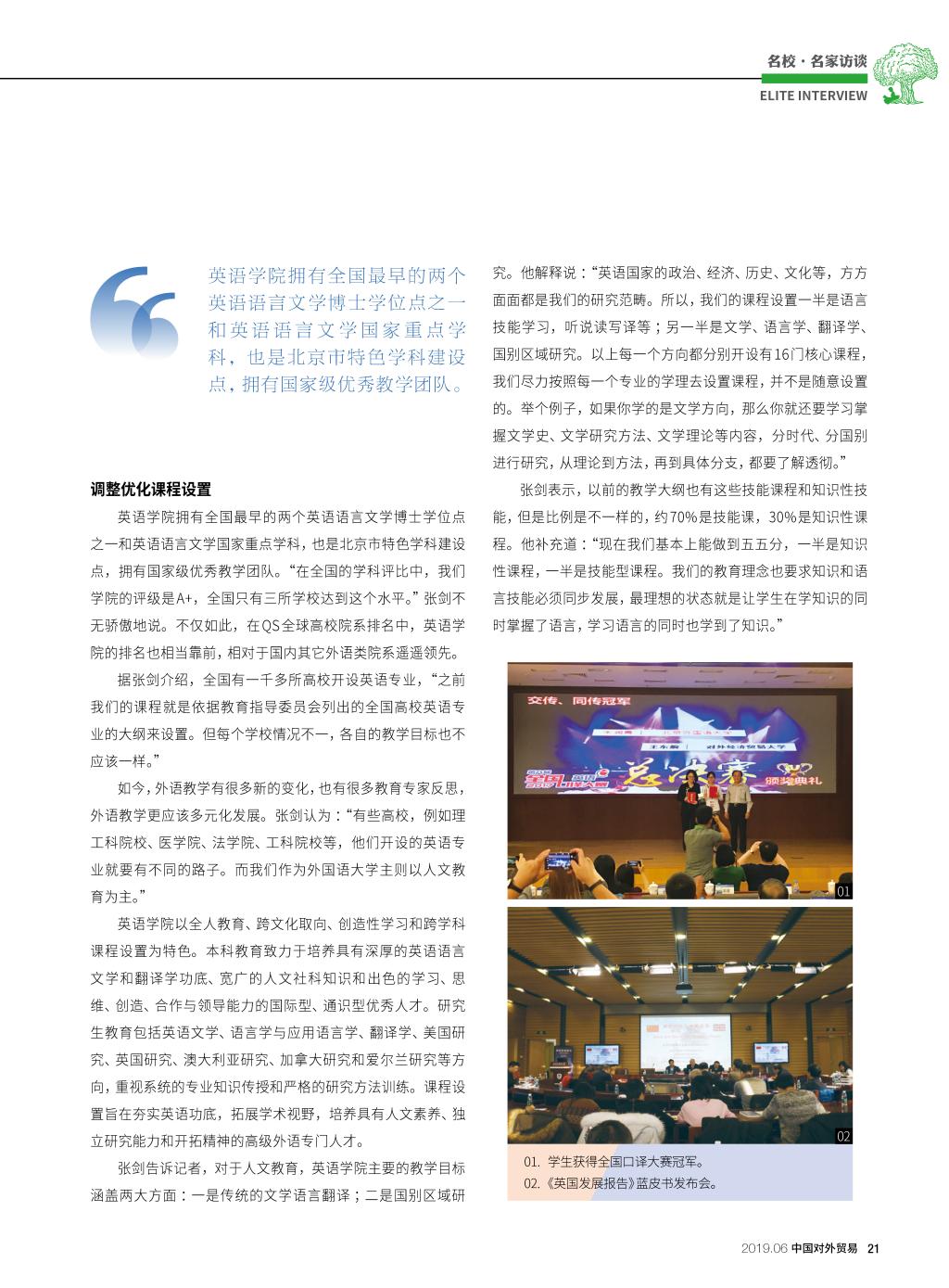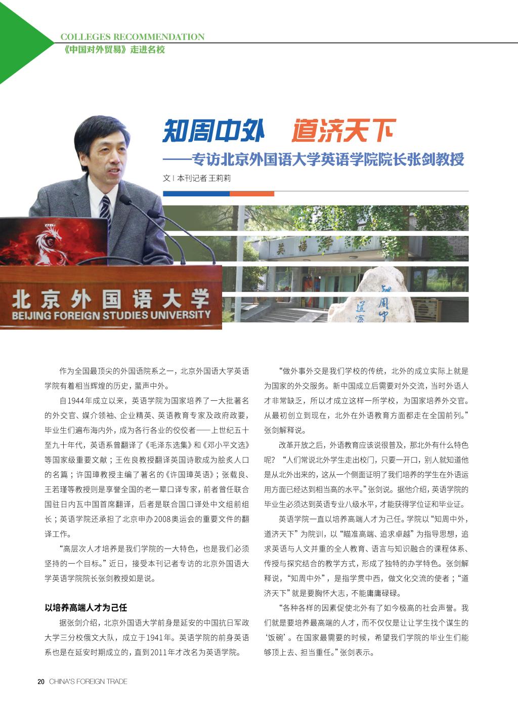 张剑院长接受《中国对外贸易》专访谈学院教育