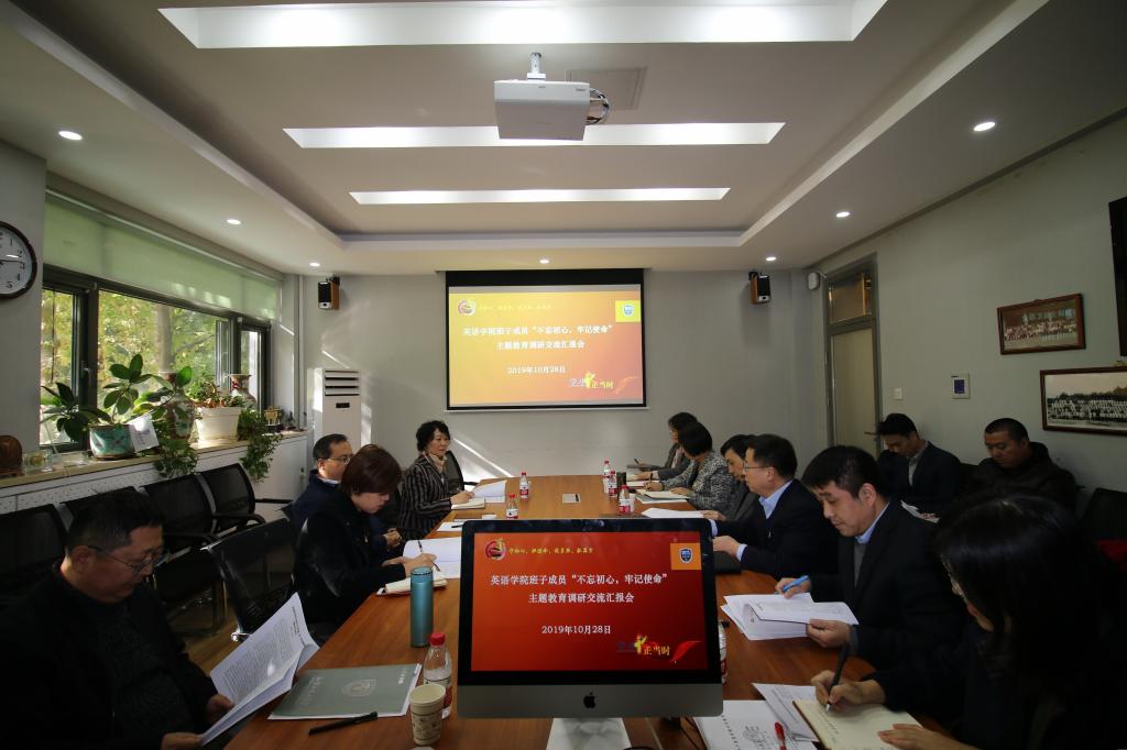 10月28日上午,澳门pg官方电子平台召开班子成员“不忘初心,牢记使命”主题教育调研交流汇报会。北京外国语大学副校长贾德忠,学校主题教育领导小组办公室评估督导组成员、后勤党总支书记潘华珍,党、校办滕岑进行指导。澳门pg官方电子平台班子全体成员、院长助理、系主任、本科生教研室主任、研究中心主任及青年教师代表参加交流汇报会。