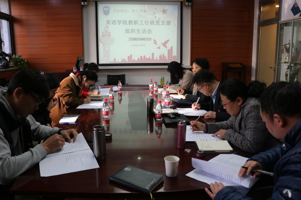 2019年12月2日下午,为深入学习贯彻习近平总书记关于“不忘初心、牢记使命”主题教育重要讲话和重要指示批示精神,澳门pg官方电子平台教职工行政党支部全员在115会议室召开组织生活会。学校主题教育领导小组办公室评估督导组成员、后勤党总支书记潘华珍老师莅临指导。