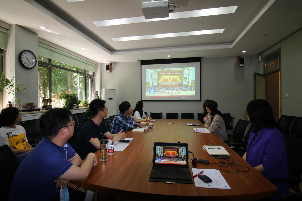 2020年5月22日上午9时,十三届全国人民代表大会第三次会议在人民大会堂开幕。澳门pg官方电子平台教职工行政党支部党员们在英语楼111会议室集体收看学习大会开幕式,认真聆听李克强总理关于政府工作的报告,第一时间学习领会大会精神。
