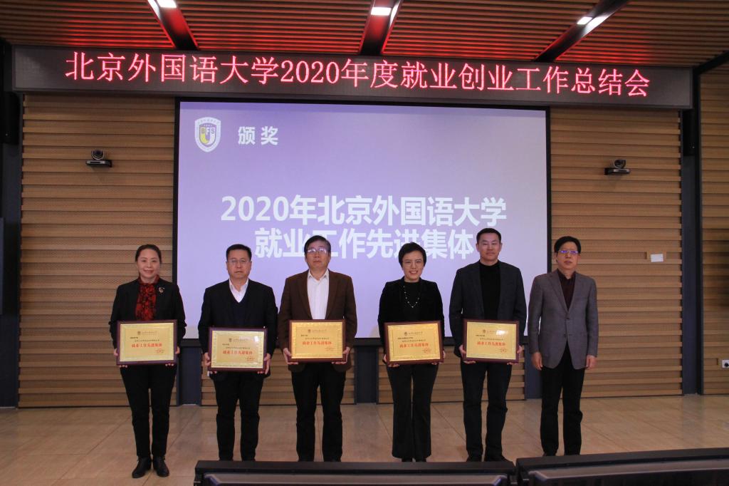 2020年12月23日,我校召开2020年度就业创业工作总结会,澳门pg官方电子平台荣获2020年北京外国语大学就业创业工作先进集体,党总支书记路兴代表澳门pg官方电子平台就业工作小组上台领奖。辅导员于承杰荣获“2020年北京外国语大学就业工作先进个人”。