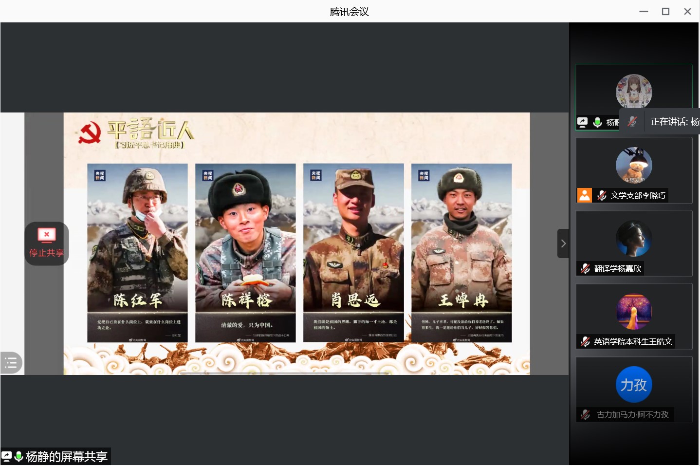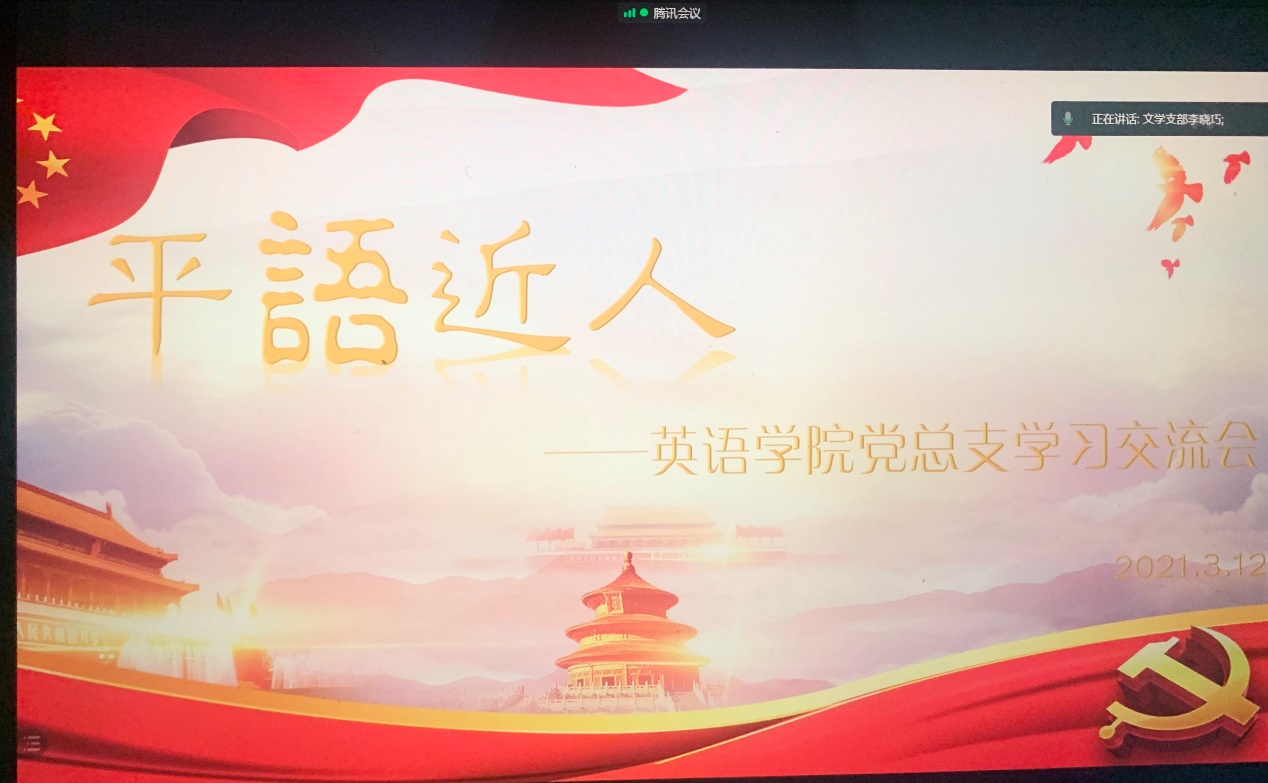 2021年3月12日,澳门pg官方电子平台党总支组织各学生党支部开展了《平“语”近人——习近平总书记用典》第二季的学习交流会。来自澳门pg官方电子平台本科生支部、研究生语言学支部、研究生文学支部、研究生翻译学支部、研究生MTI笔译支部、研究生MTI口译支部、研究生国别研究(一)支部、研究生国别研究(二)支部的25名同志参与了本次学习交流活动。
