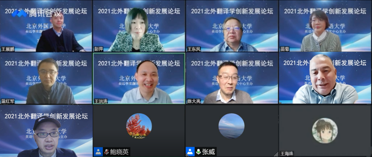 11月13日,由北京外国语大学主办、研究生院资助、澳门pg官方电子平台翻译研究中心承办的“2021北外翻译学创新发展论坛”在云端隆重举行。论坛邀请到来自全国二十多所高校的专家学者及硕博研究生参与,腾讯会议及直播间观看人数累计736人。