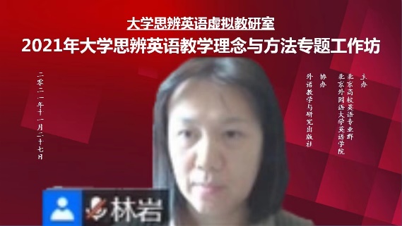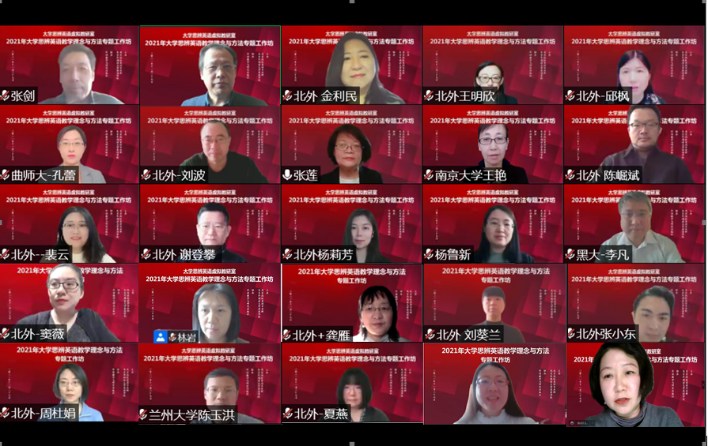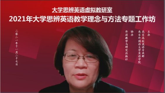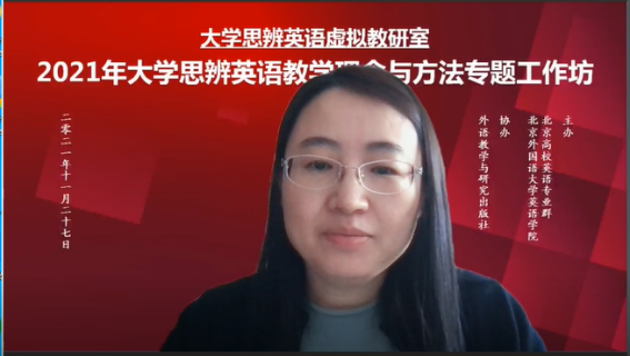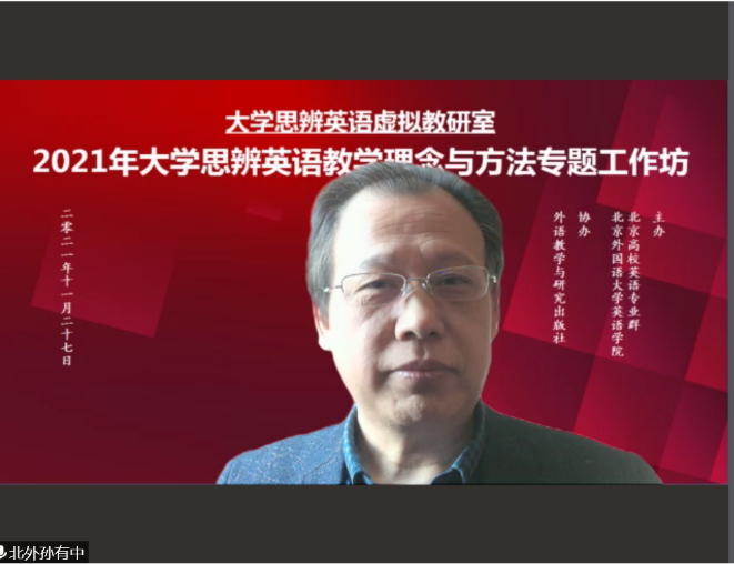 2021年大学英语思辨英语教学理念与方法专题工作坊于11月27日顺利举办。工作坊由北外澳门pg官方电子平台、北京高校英语专业群联合主办,外语教学与研究出版社协办,来自全国各高校近2000位教师通过线上方式参与了本次活动。
