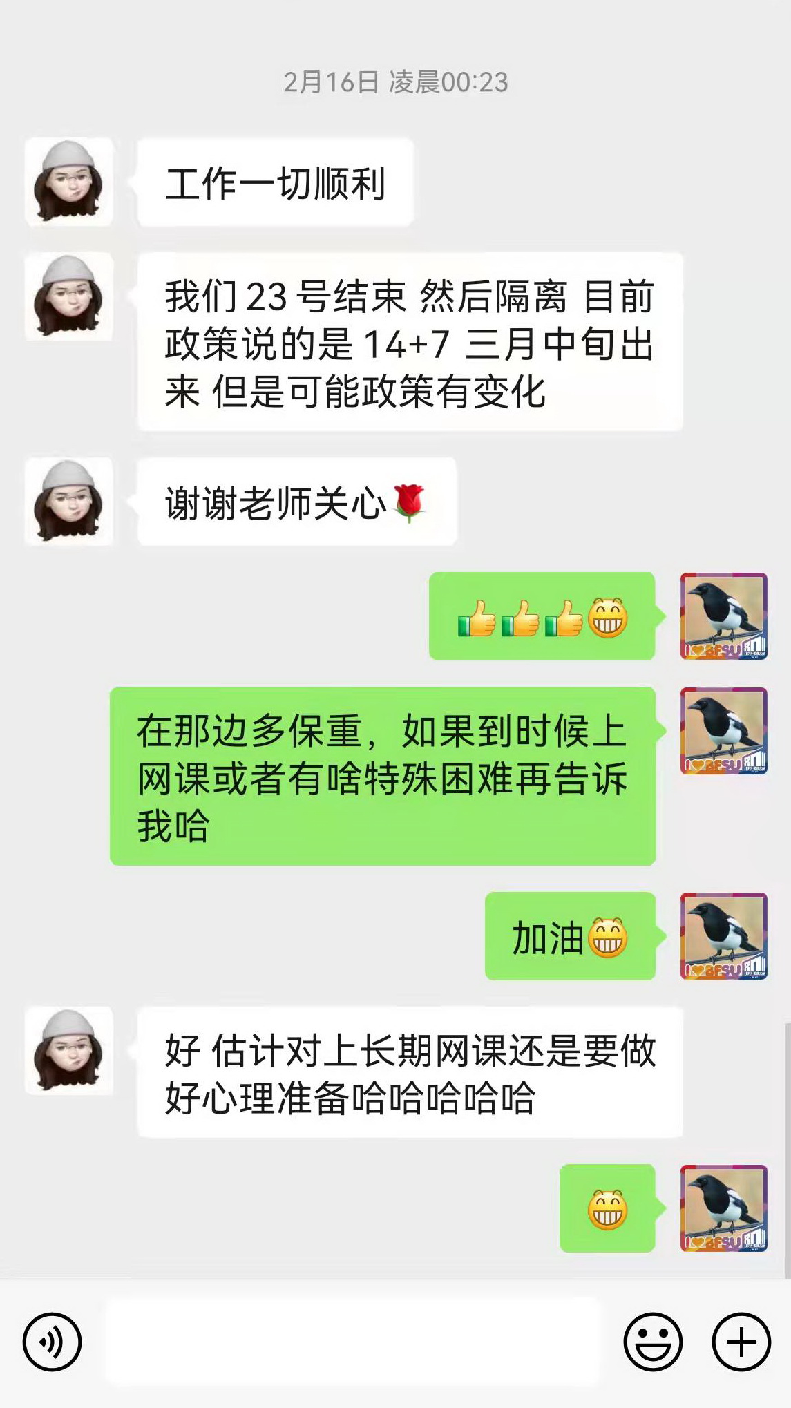 除了提供学业指导,澳门pg官方电子平台还以多种形式为学生送去关心和温暖。虎年春节来临之际,澳门pg官方电子平台院长张剑、党总支书记王明欣专门录制了慰问视频,鼓励同学们不畏辛苦、磨炼意志,发挥专业优势,服务国家,展示北外学子风采。
