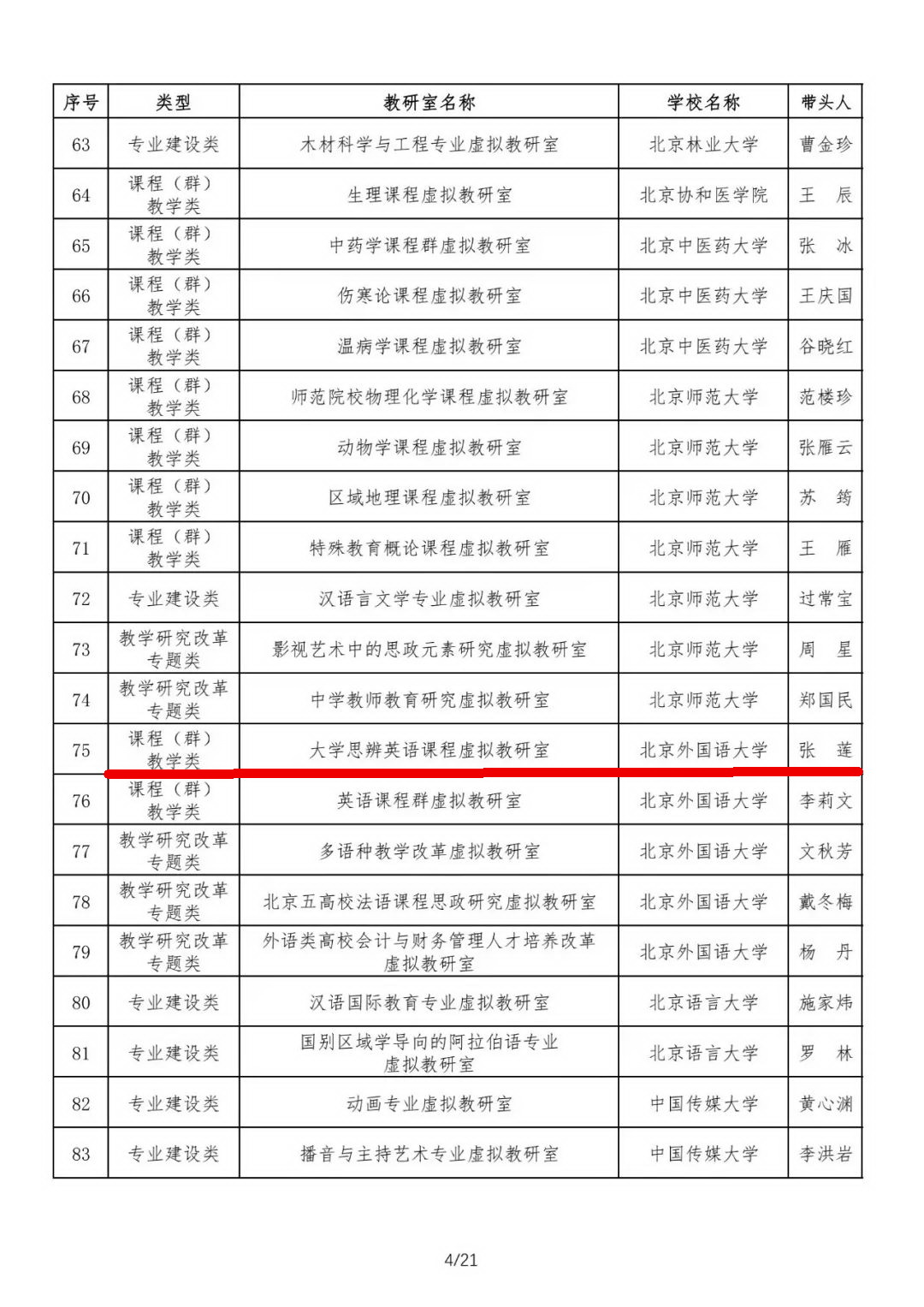 近日,教育部办公厅公布首批虚拟教研室建设试点名单。澳门pg官方电子平台“大学思辨英语课程虚拟教研室”入选。