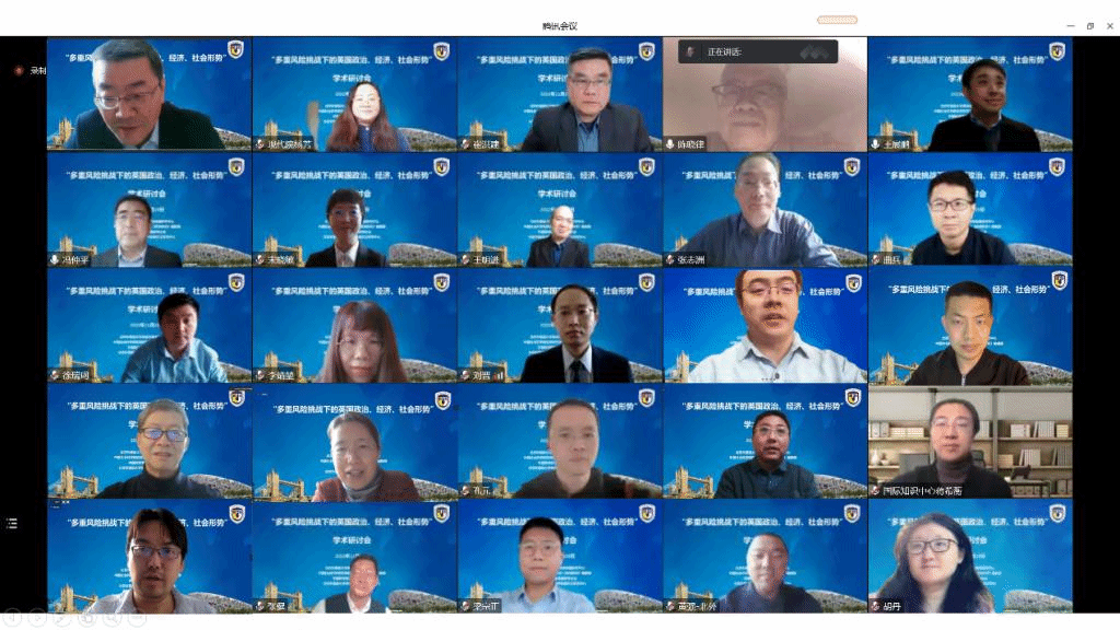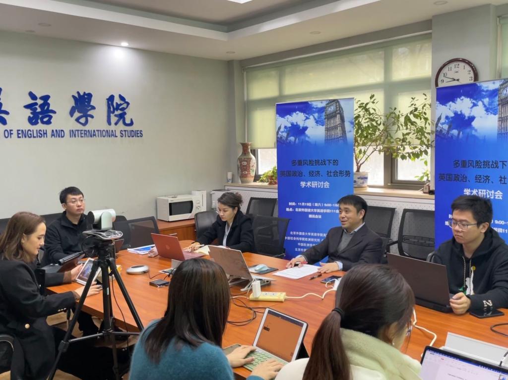 11月19日,澳门pg官方电子平台英国研究中心、中国社会科学院欧洲研究所《欧洲研究》编辑部、中国欧洲学会英国研究分会等机构在北外联合举办“多重风险挑战下的英国政治、经济、社会形势”学术研讨会。来自中国社会科学院、中国现代国际关系研究院、中国国际问题研究院、中国国际发展知识中心、中国银行研究院、南京大学、中国政法大学、外交学院、上海外国语大学以及北外等十余家科研机构和高校的五十余位学者以线下和线上相结合的方式参加研讨。