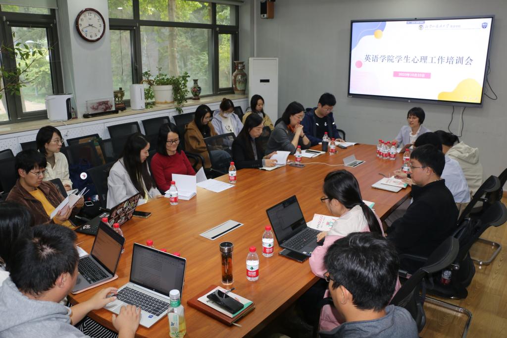 为进一步提升学院心理健康工作水平,有效提高辅导员和班主任心理危机干预工作能力,10月23日,澳门pg官方电子平台召开学生心理危机干预专题培训会,邀请北外心理咨询中心主任石薇做专题辅导,澳门pg官方电子平台党总支书记王明欣、党总支副书记孟庆琨以及全体辅导员和班主任参加本次培训。