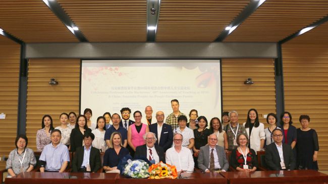 在随后的分享环节,马克林教授的朋友、同事和学生分别发言,追忆马克林教授在北外的任教经历,回顾马克林教授的学术成就以及中澳人文交流的历程,表达了对马克林教授诚挚的敬意和感谢。发言人有北外退休教授胡文仲、王家湘、杜学增和夏玉和,以及马克林教授的好友柯马凯·柯鲁克(Michael Crook)和学生代表朱雅兰等人。来自格里菲斯大学的学者王毅、丁培毅、单旭光、凯特琳·伯恩(Caitlin Bryne)、留学生Phoenix Potoi以及马克林教授的女儿和外孙也分别发言。原格里菲斯大学教授韦恩·哈德逊(Wayne Hudson)视频发言。区域与全球治理高等研究院副院长李又文主持分享会。
