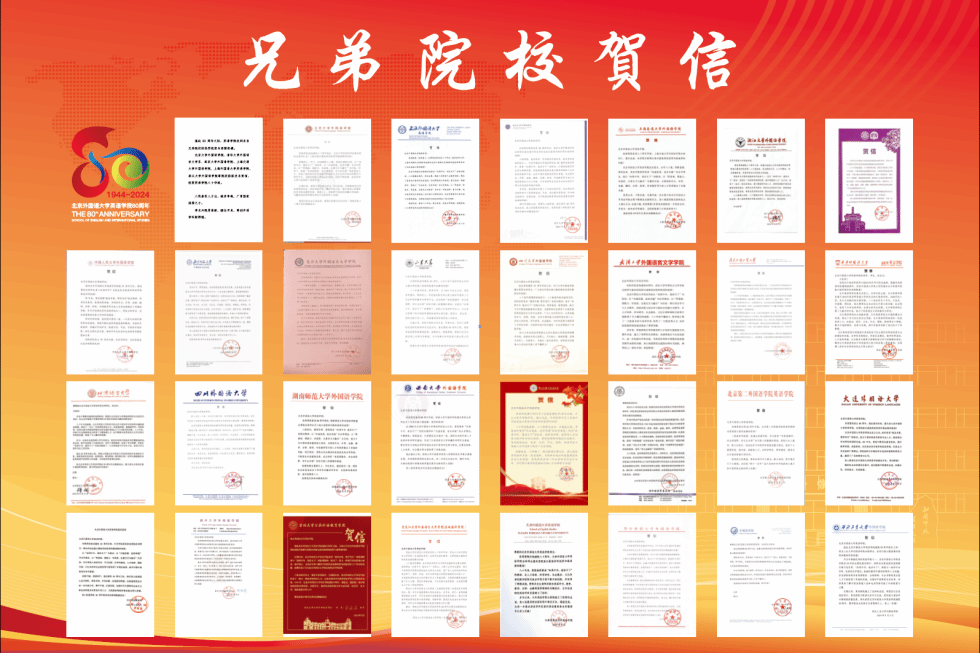 高等学校外语类专业教指委主任委员以及30余所兄弟院校的澳门pg官方电子平台或外国语学院发来贺信,为澳门pg官方电子平台80华诞送上祝福。