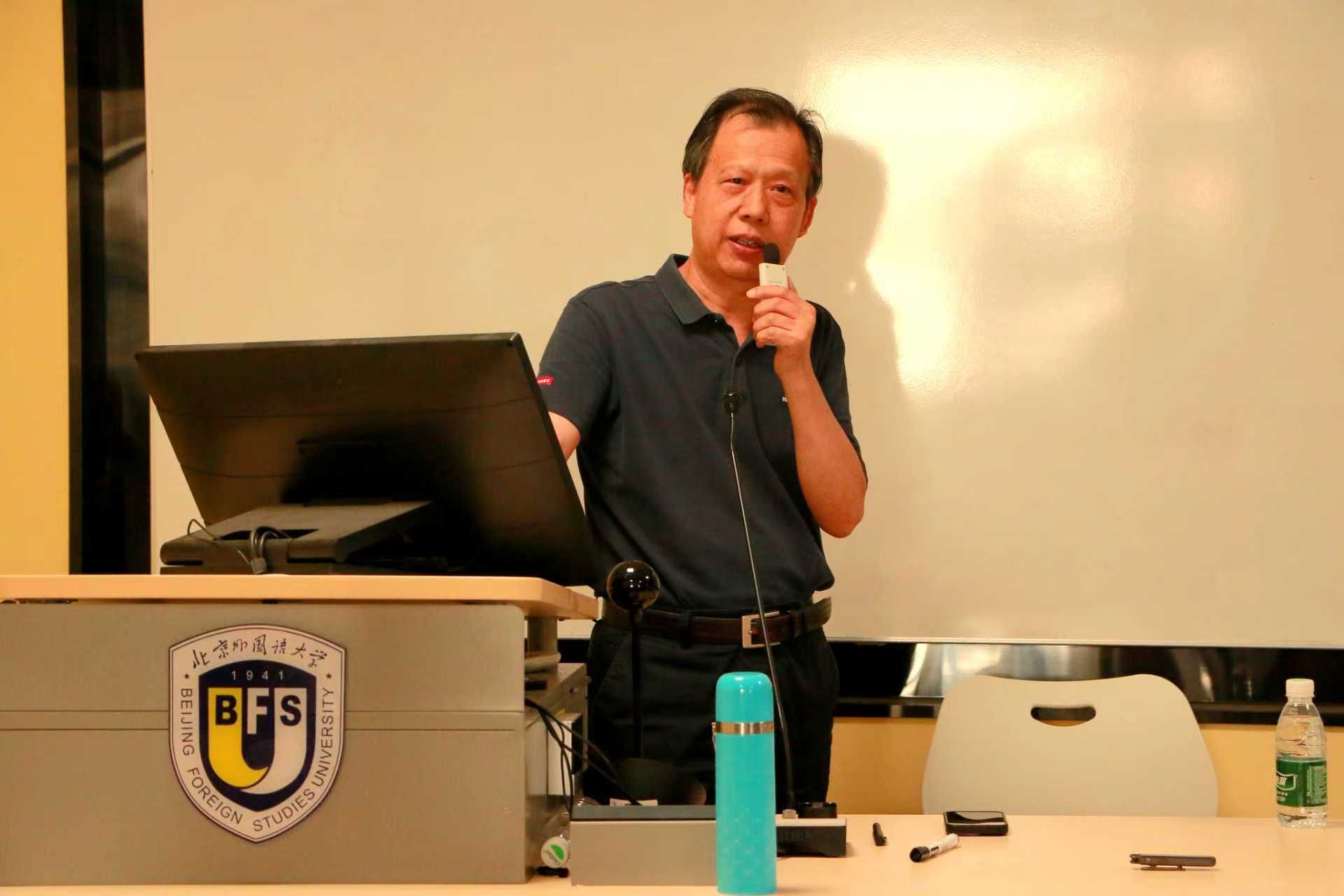 9月17日,由澳门pg官方电子平台主办的“知周讲堂”首期讲座在英语楼417教室成功举行。澳门pg官方电子平台孙有中教授应邀作题为“中国原创性教材建设:理念与实践”的专题报告,澳门pg官方电子平台副院长张莲教授出席活动,讲座吸引了来自校内外近百位师生参与。