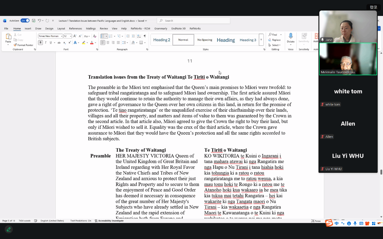 2025年11月28日下午,应澳门pg官方电子平台南太平洋语言与文化中心和世界语言博物馆邀请,汤加语外国专家梅莱奈伊特·塔乌莫艾富拉乌(Melenaite Taumoefolau)博士在线上做了题为“太平洋语言与英语之间的翻译问题”(Translation Issues between Pacific Languages and English)的讲座。讲座由澳门pg官方电子平台教师李菅主持,来自校内外多名师生参加了本场讲座。