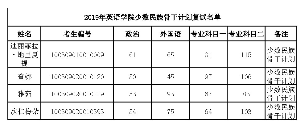 2019年澳门pg官方电子平台少数民族骨干计划复试名单公示