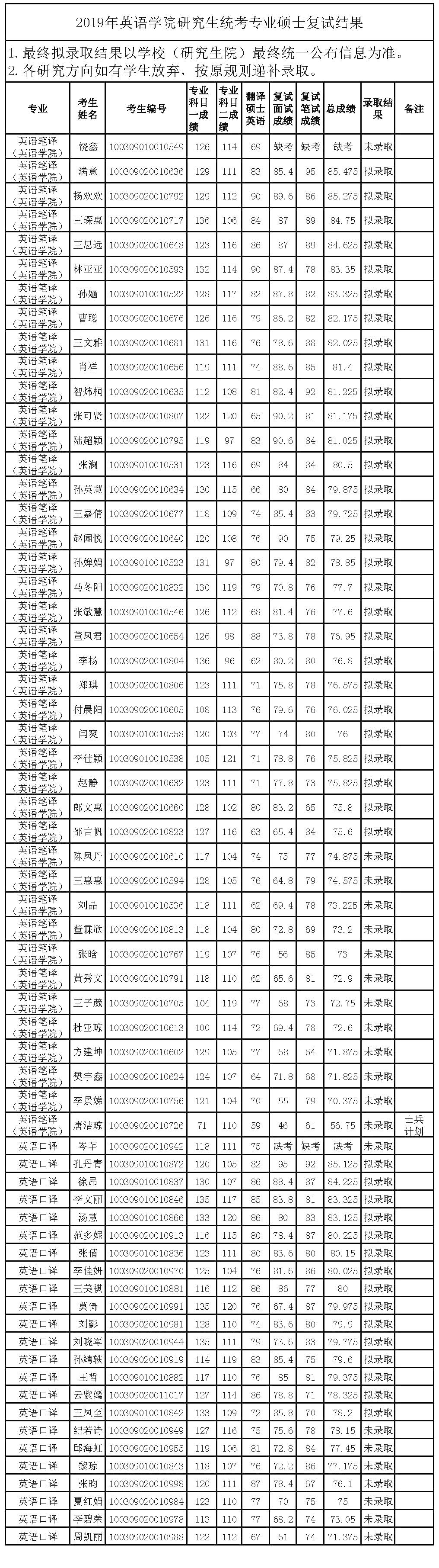 2019年澳门pg官方电子平台研究生统考学术硕士复试结果公示