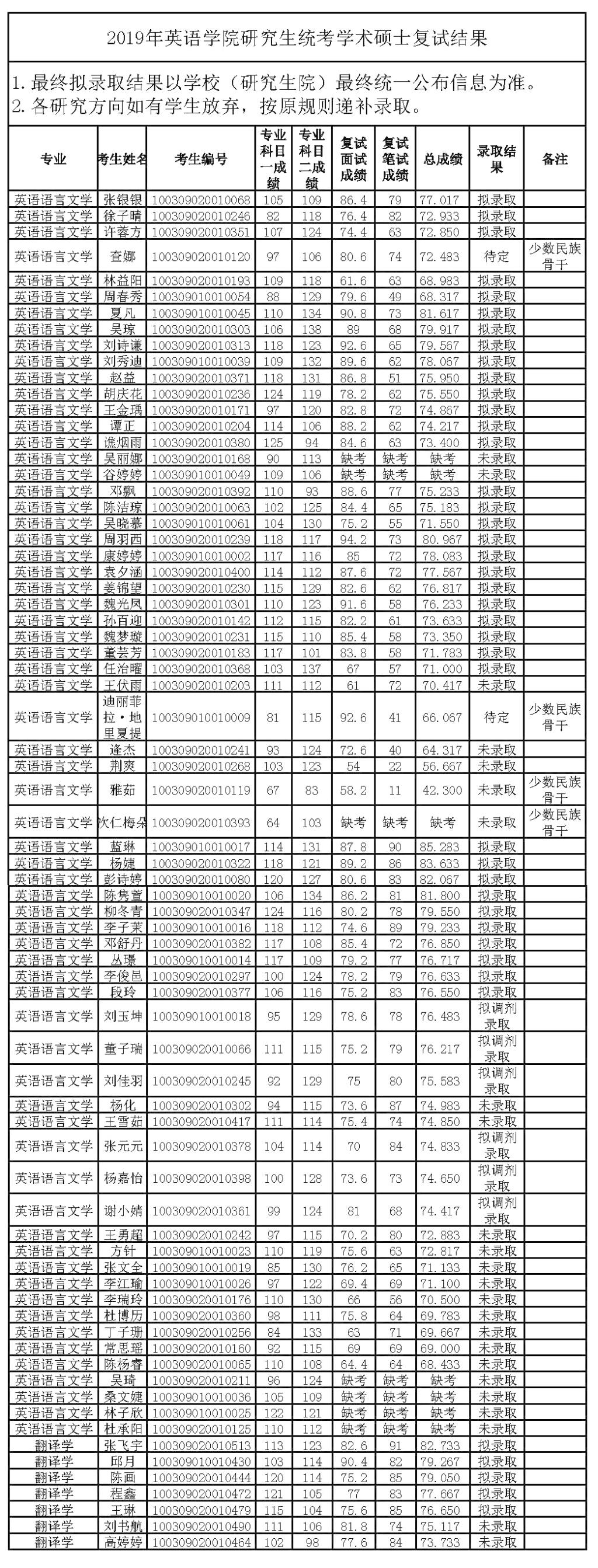 2019年澳门pg官方电子平台研究生统考学术硕士复试结果公示