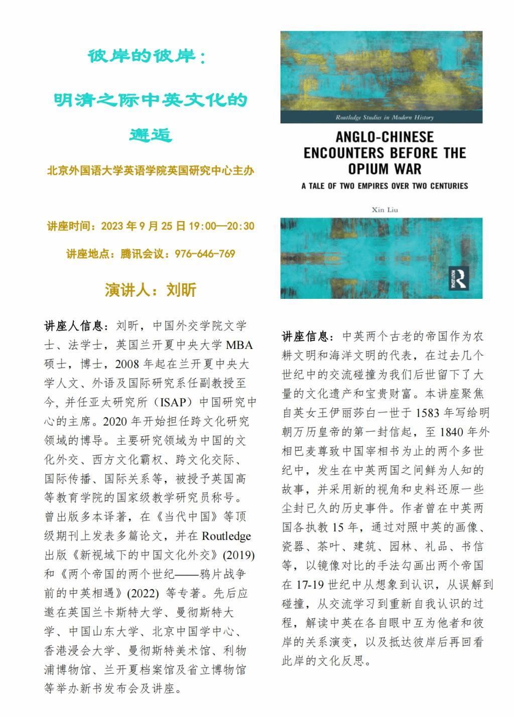 9月25日讲座:明清之际中英文化的邂逅