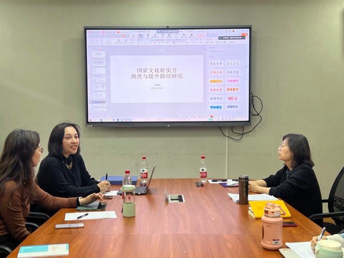2024年4月29日,燕山大学外国语学院研究生导师、燕山大学长城文化对外传播研究所所长王丽雅教授应教育部区域和国别研究基地北京外国语大学加拿大研究中心邀请,在澳门pg官方电子平台111会议室成功举行了题为“国家文化软实力测度可提升路径研究”的讲座。该讲座为海外智库中的中国文化形象系列学术讲座之第三十六讲,由教育部区域和国别研究基地北京外国语大学加拿大研究中心主任刘琛教授担任主持,北京外国语大学国际中国文化研究院教授、博士生导师黄丽娟教授担任点评人。讲座共吸引了校内外百余名师生线上和线下参加。