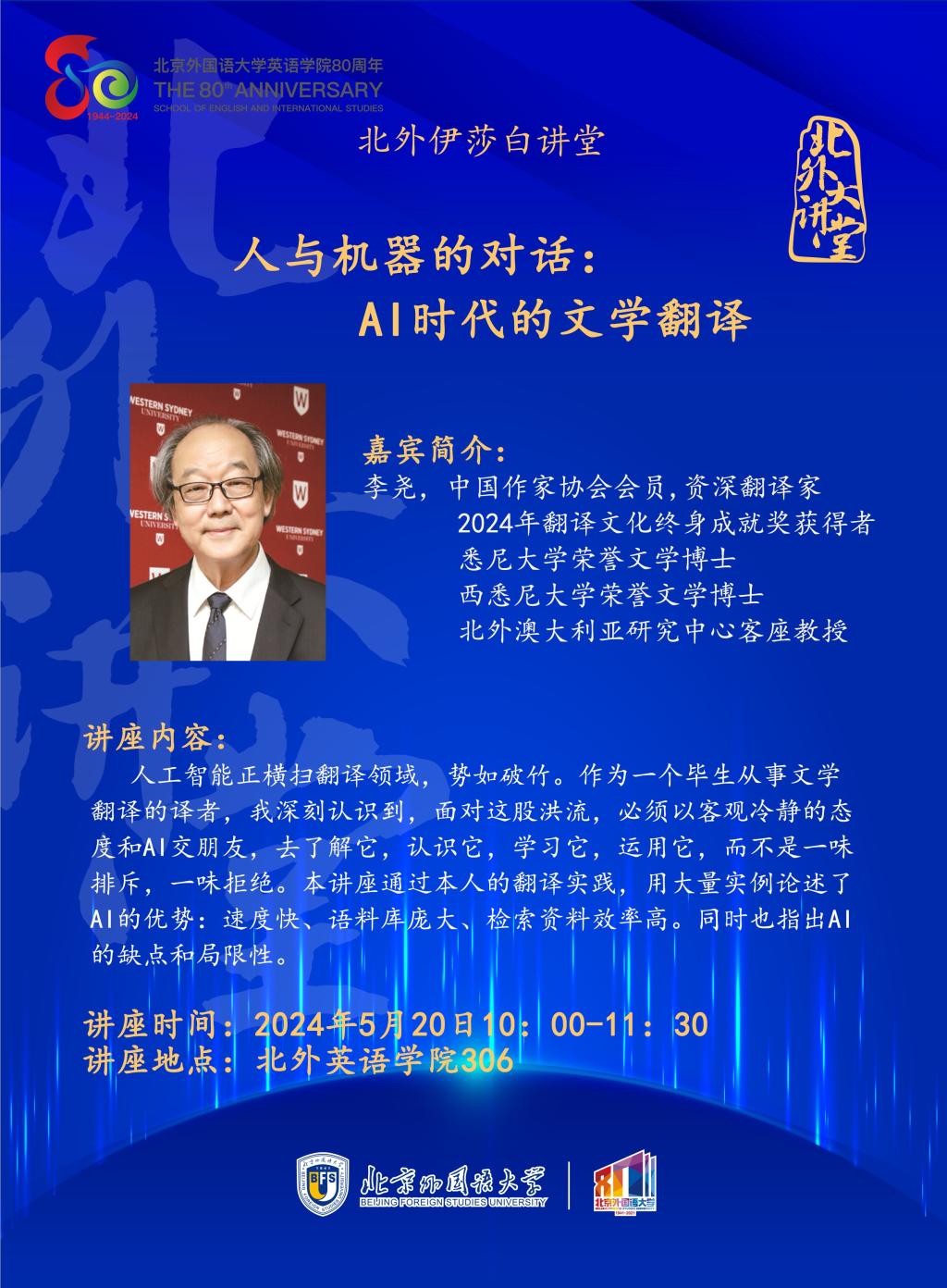 讲座人:李尧,资深翻译家、2024年翻译文化终身成就奖获得者