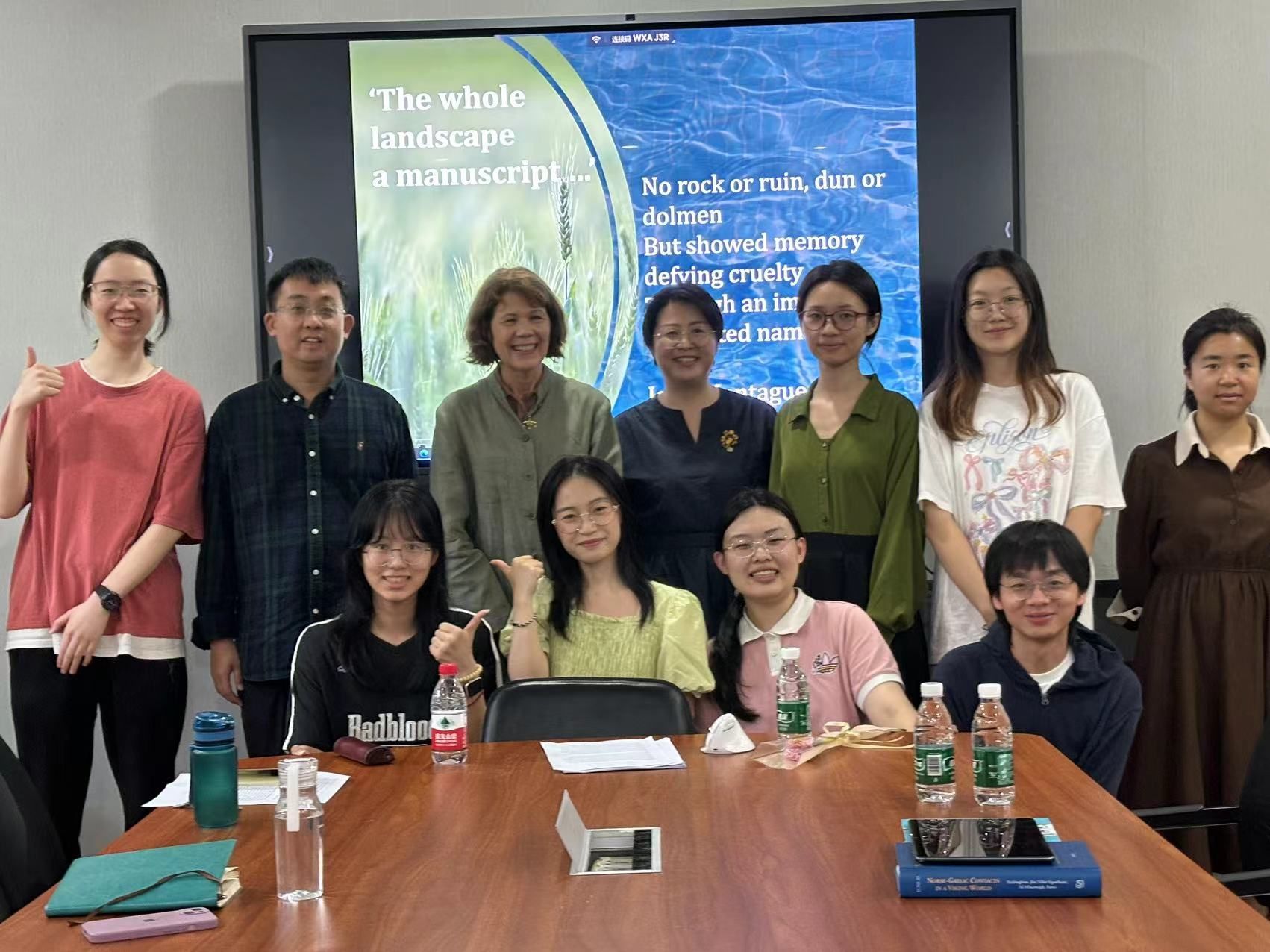 9月19日下午,剑桥大学盎格鲁—撒克逊、古诺斯和凯尔特系玛丽·妮梅妮教授(Máire Ní Mhaonaigh)应北外爱尔兰研究中心邀请,在北外澳门pg官方电子平台111会议室举办了题为《景观的命名:解读中世纪爱尔兰地名典故诗文本》(Naming and Claiming the Landscape: Reading Medieval Irish Dinnshenchas Texts)的讲座。此次讲座由北外爱尔兰研究中心主任陈丽教授主持,爱尔兰语教师张放、澳门pg官方电子平台爱尔兰研究、英美文学等方向的硕士生以及来自首都师范大学、中国社会科学院等单位的研究者参加了该讲座。