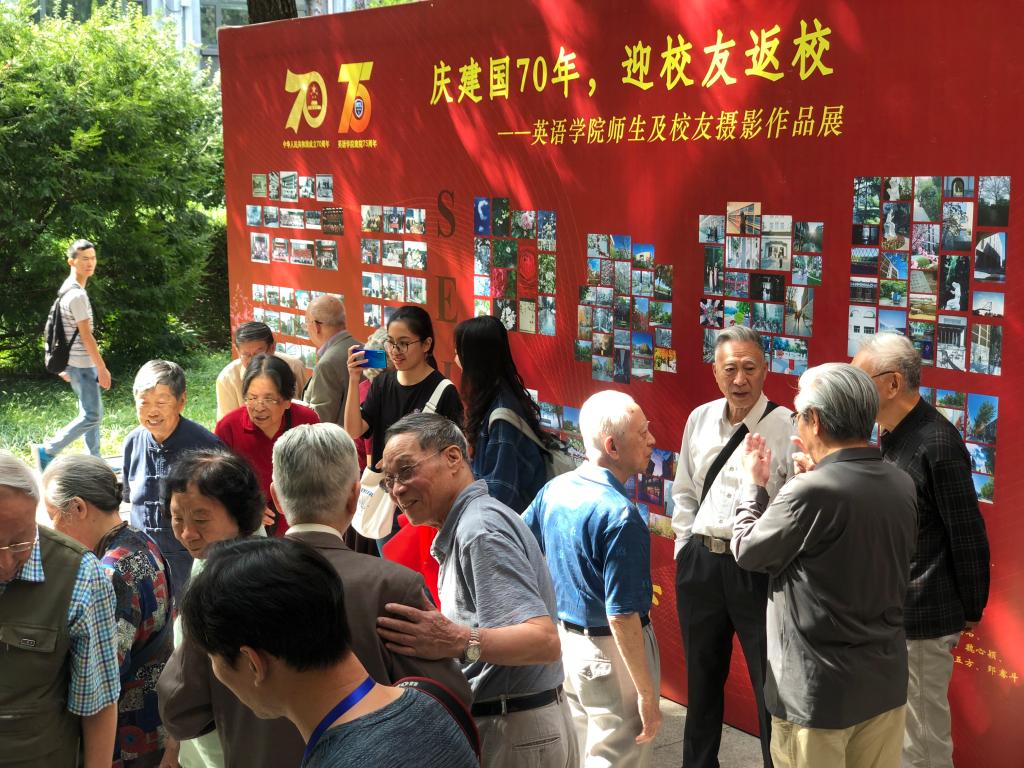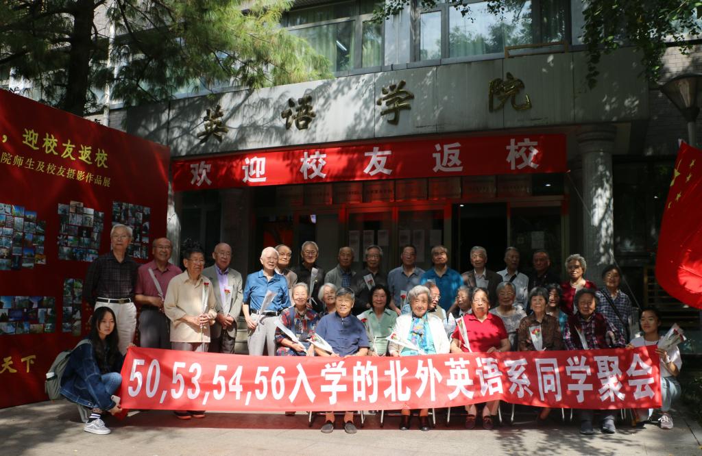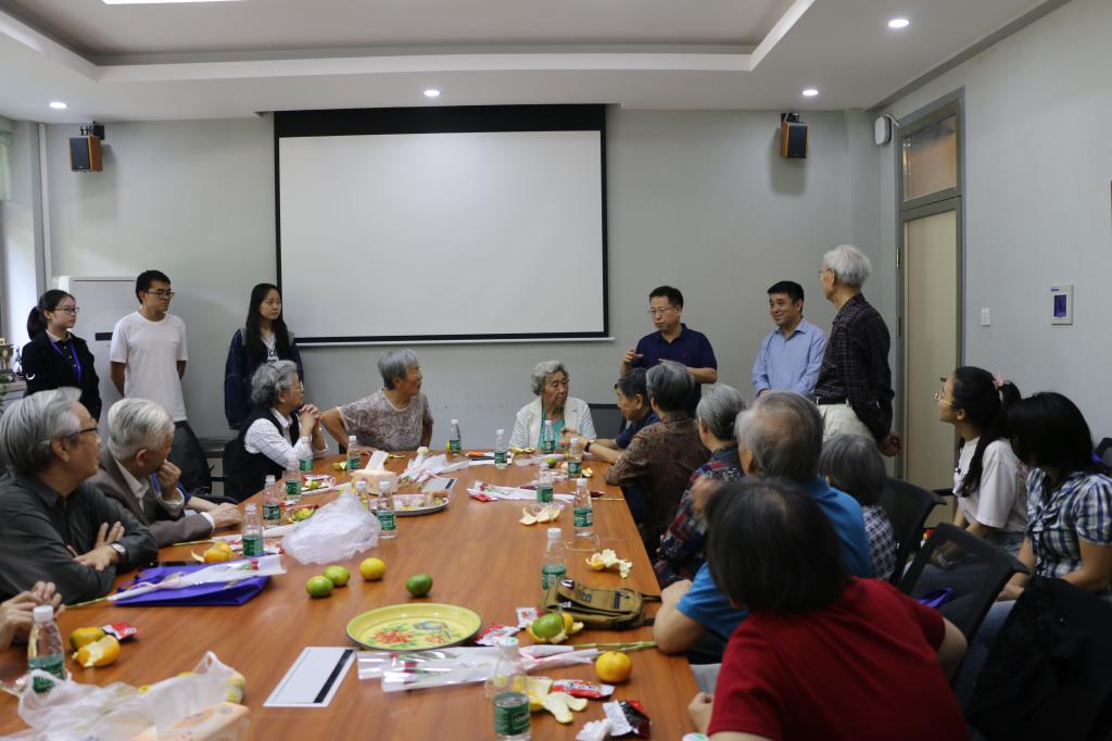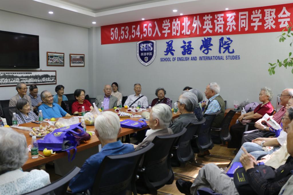 各级校友纷纷回到母校追寻旧日时光。有年级聚会,有携家带口,也有独自前行。其中最大规模的50年代校友返校聚会活动在英语楼111会议室举行,来自50级、53级、54级、56级与60级的30多位校友齐聚一堂,共同追忆往昔校园生活。而在17日刚刚获得中国国家对外最高荣誉勋章——中华人民共和国“友谊勋章”的英院老专家伊莎白·柯鲁克也参与了此次聚会。澳门pg官方电子平台党总支书记路兴、副院长王展鹏出席了此次活动,对老校友们的到来表示了热烈欢迎,感谢各位校友对澳门pg官方电子平台发展的关心与支持,希望明年校庆日依然能见到大家的身影。