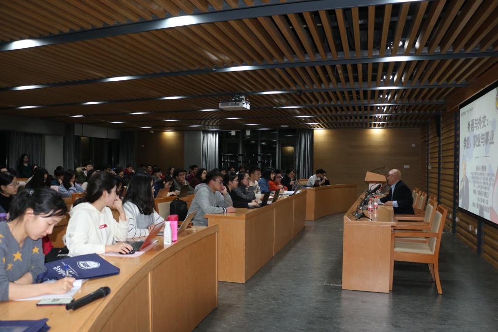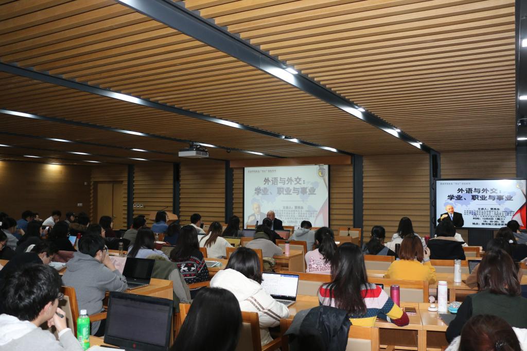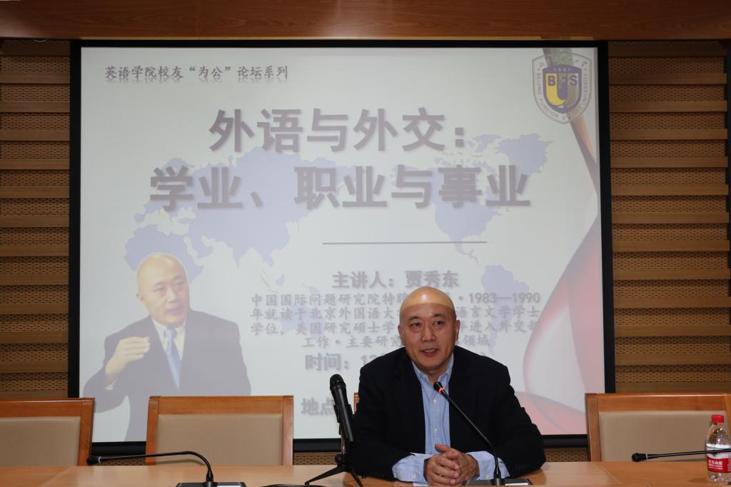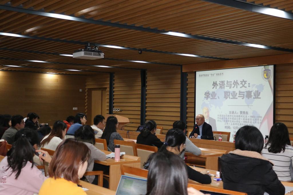 贾秀东校友以“外语与外交:学业、职业与事业”为题,结合自身学习和工作经历,谈了知识和能力储备的重要性,职业选择与规划的必要性;介绍了在从事外交外事及其他涉外工作时,未来可能遇到的一些问题和挑战。