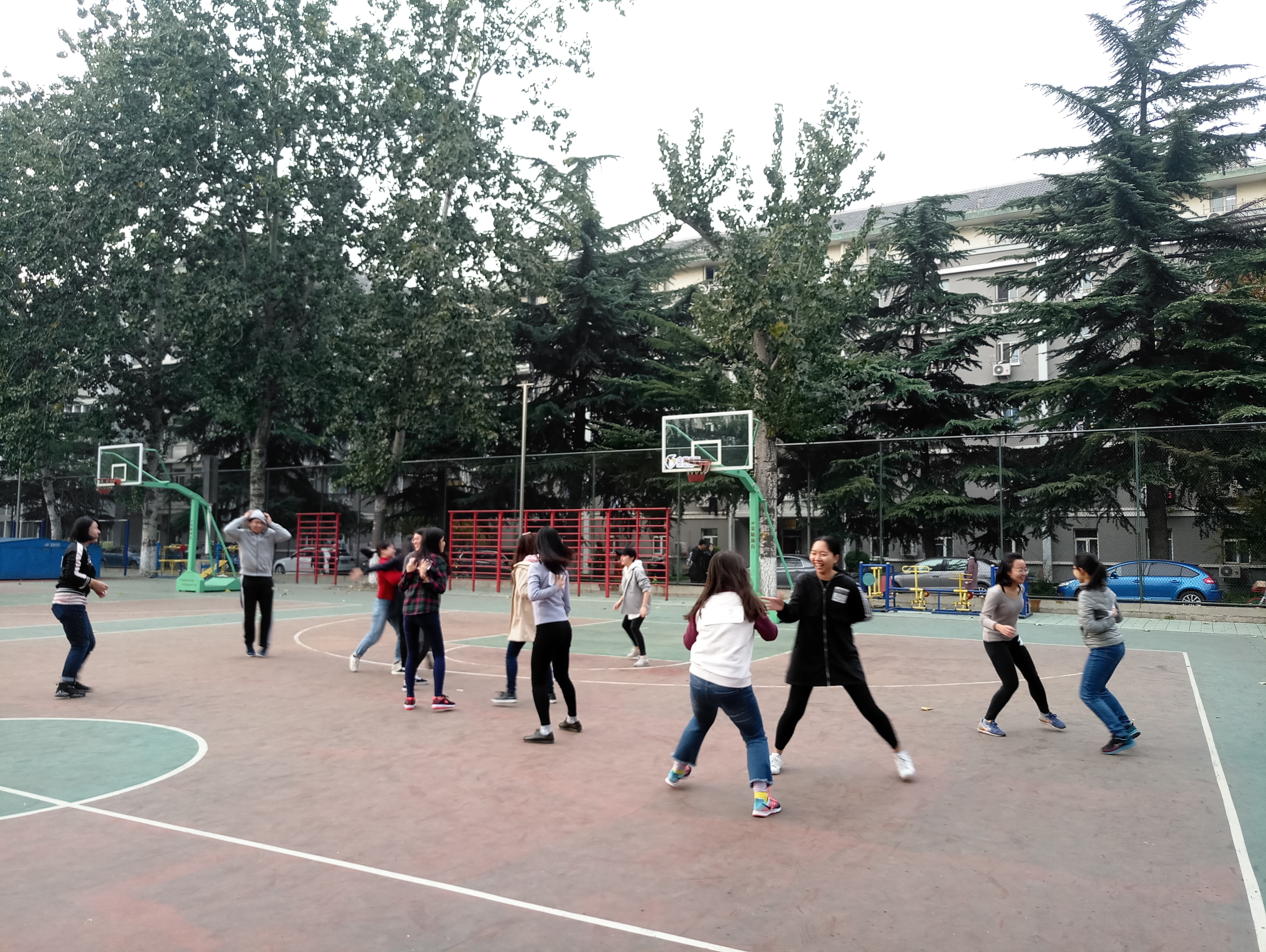 ——本次趣味运动会采用临时分组的团体赛形式,由研一笔译1班、笔译2班、语言学、爱研、英研、美研、澳研及研二的同学组成四支队伍参赛。“花样接力”活动中,同学两两搭配,协作完成背对背运篮球、两人三足,运球跑游戏。同学们由开始的生涩,逐渐磨合成默契的搭档,团队协作,屡创佳绩。