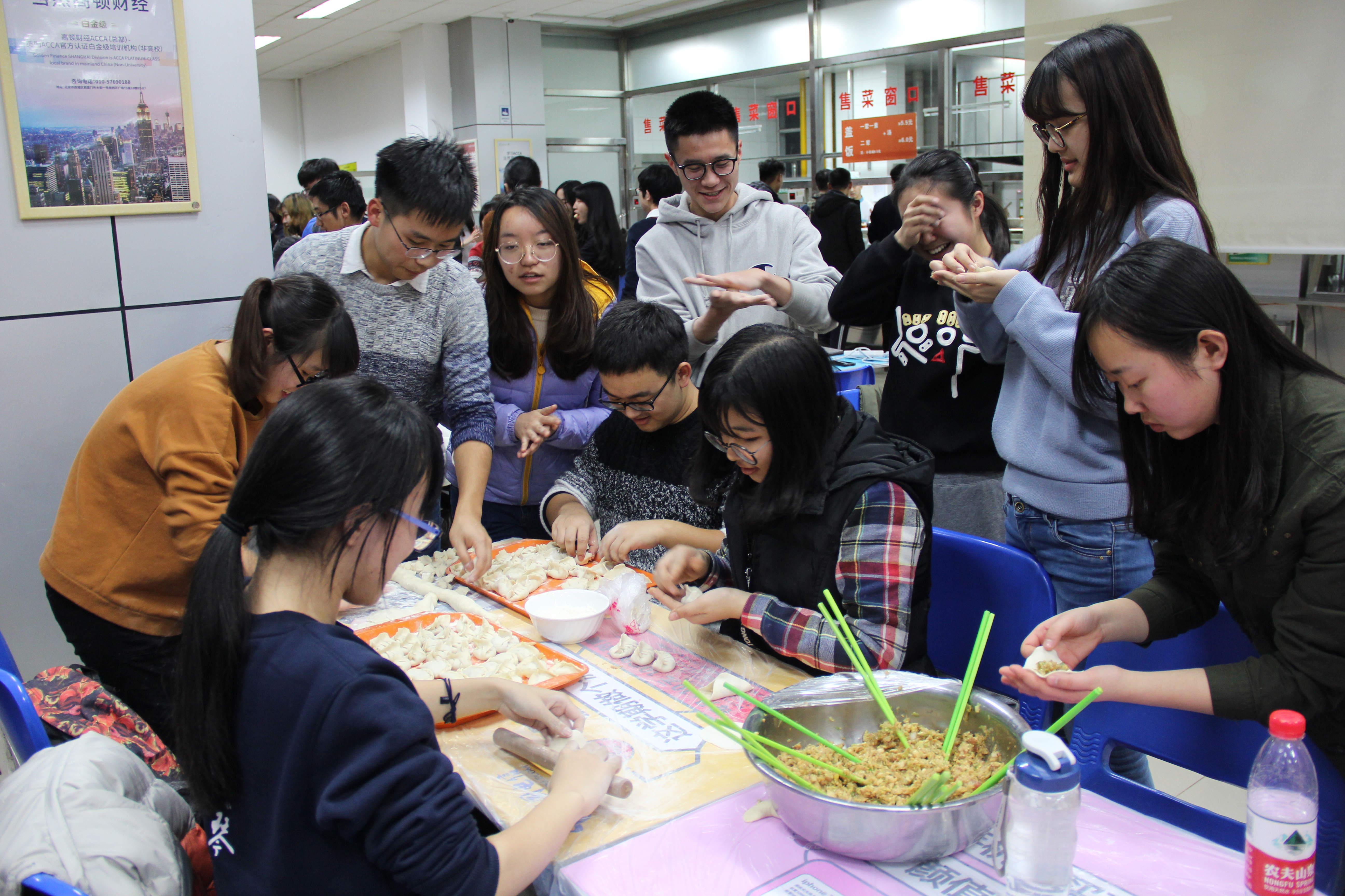 ——随着时间的推移,比赛也接近尾声。大家在感受节日的温暖、集体的温馨,缓解思乡之情的同时,更真实的体会到了中国传统节日的内涵。包饺子大赛作为一个集体活动,不仅促进了师生之间的交流,也增进了同学之间的友谊,增强了集体的凝聚力,进一步培养团结协作的精神,为同学们的大学生活留下了一页美好的回忆。