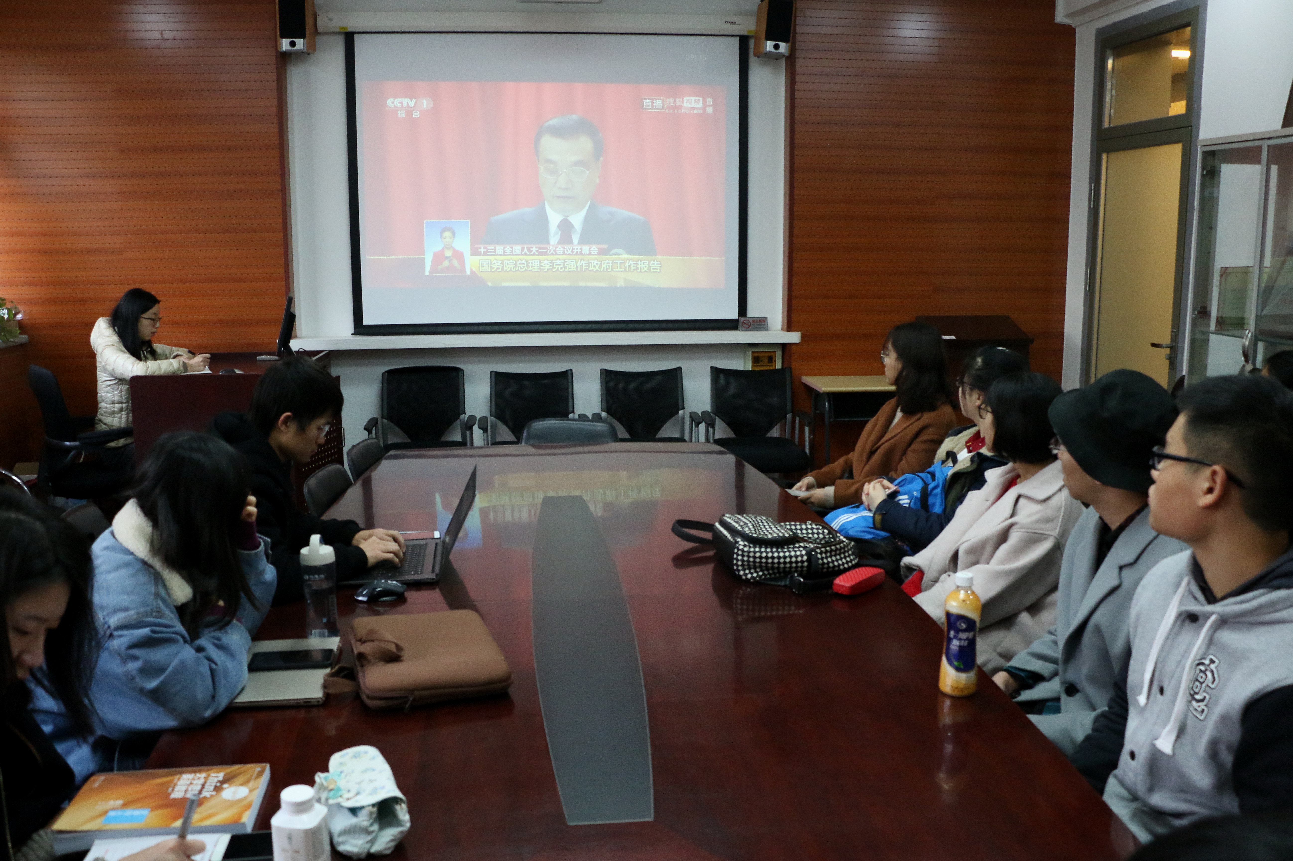 ——3月5日上午,第十三届全国人大一次会议在北京开幕。国务院总理李克强代表国务院,向大会报告过去五年政府工作李克强总理作政府工作报告,对今年工作提出建议。澳门pg官方电子平台组织师生在115会议室现场收看,党总支书记路兴、辅导员及部分学生团支部书记、学生骨干、入党积极分子等参会学习。