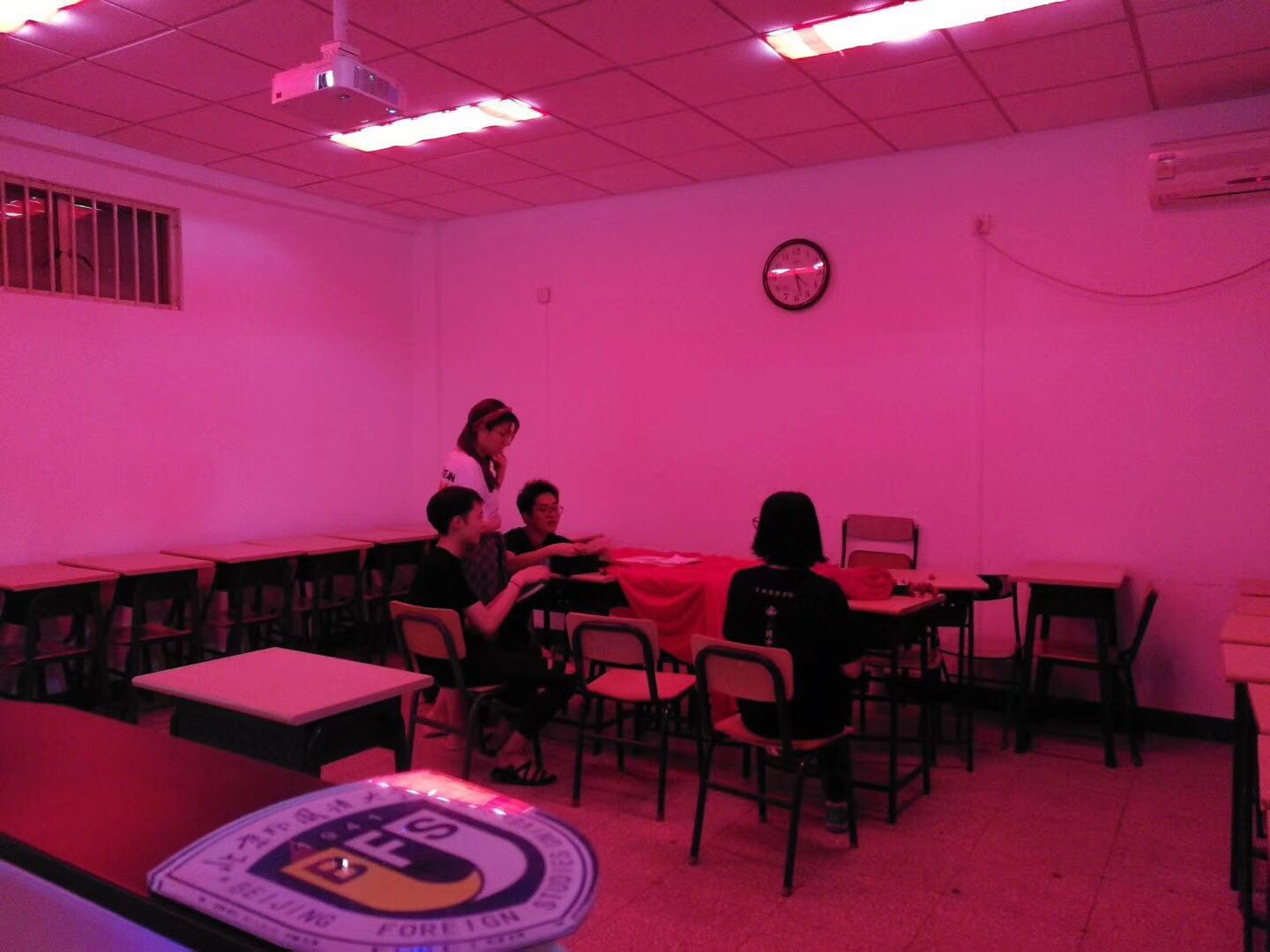——“DeBlock”密室逃脱活动采用常见的密室逃脱游戏形式:将一组四到七人的玩家置于办公室精心布置的“密室”(澳门pg官方电子平台的教室)中,在规定的四十分钟之内,通过房间内工作人员的提示和用心设计的线索,玩家收集信息,从而走出密室。本次密室在原来的基础上对密室房间进行了创新,加入了双房间联动、双关卡等特点。游戏过程中,玩家在享受发现的乐趣、解谜的成就之时,也体会到了团队合作的重要和英语国家文化的迷人之处。