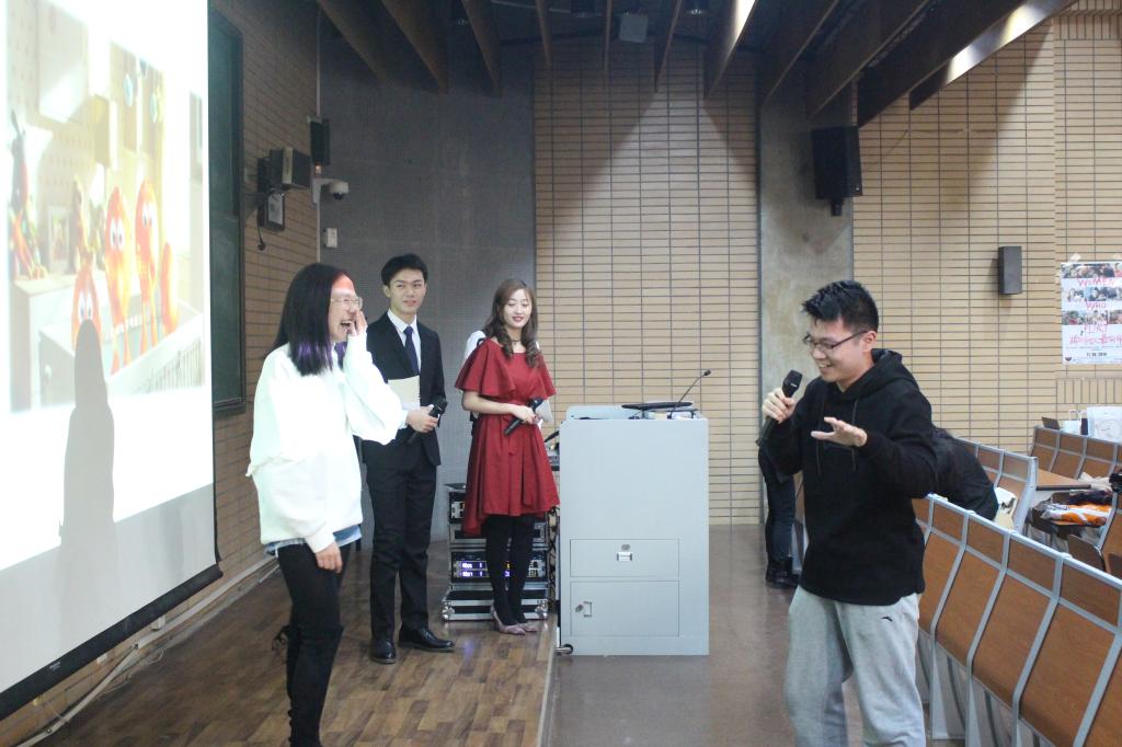 本届配音大赛总决赛由澳门pg官方电子平台团学联学术部主办,并邀请到了著名配音演员付博文老师与毛毛头老师、英语专业讲师夏燕老师与孙维老师,以及上届配音大赛冠军於文漪同学至现场担任评委。本场比赛共分为自选片段配音与创意英文配音两轮比拼,评委老师们在每一轮比赛的最后都肯定了参赛者们的创意与表现,并为他们提出了中肯而具建设性的建议。现场参与同学在大饱耳福的同时,也收获了许多有关配音与英语口语的技巧与知识。