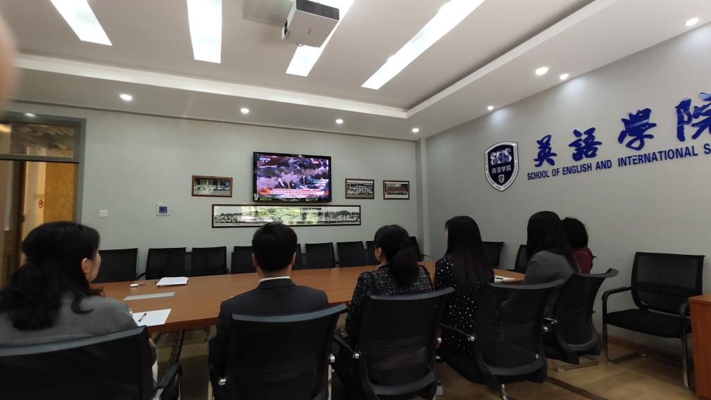 4月30日周二上午,澳门pg官方电子平台组织师生观看纪念五四运动一百周年大会现场直播,听取习近平总书记重要讲话。党总支书记、专业教师、辅导员、办公室主任、教务教学秘书及学生代表参加。