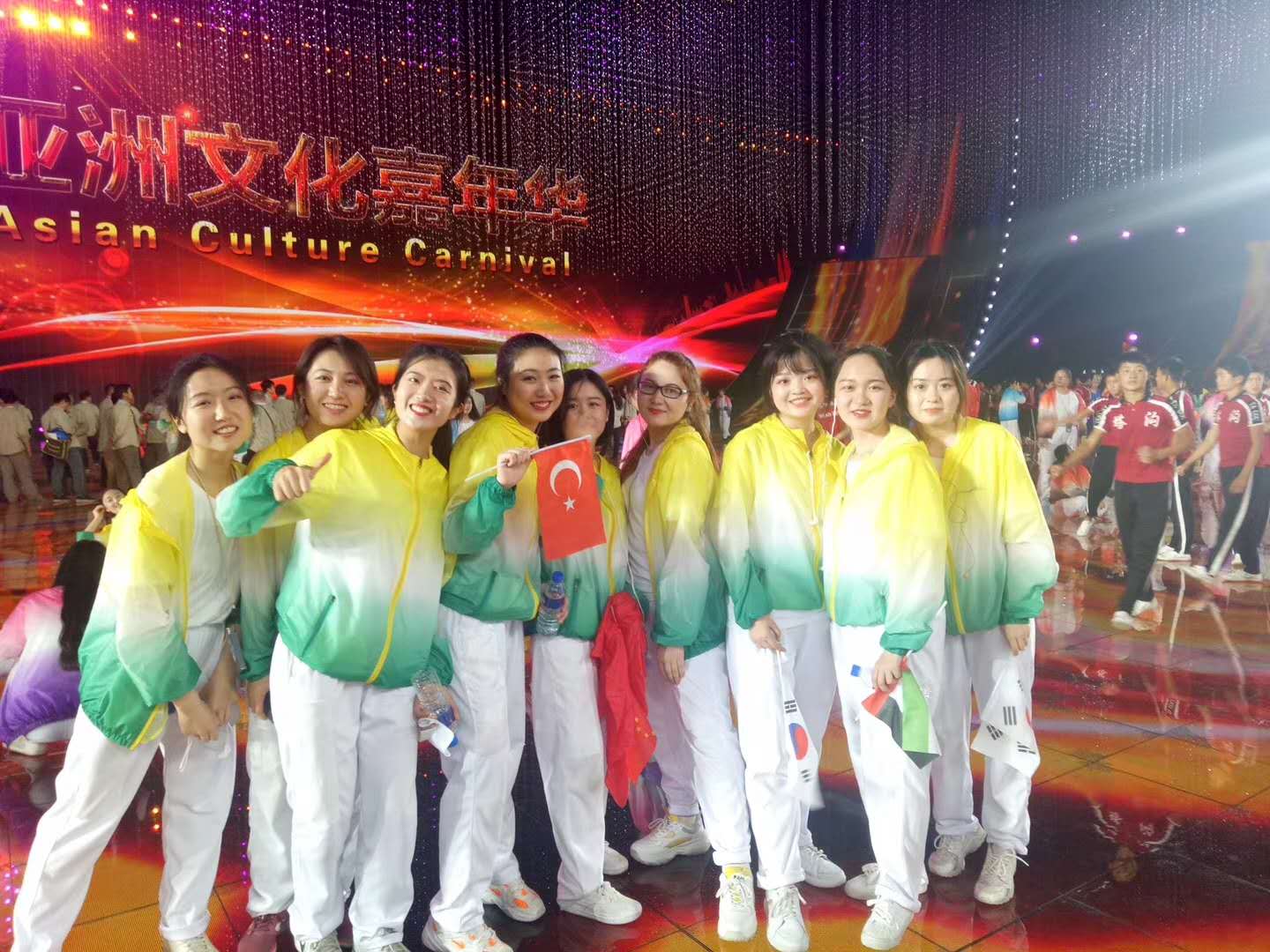 亚洲文明嘉年华作为大会重要活动之一,5月15日晚在国家体育场鸟巢精彩上演。澳门pg官方电子平台仇舒一、窦雪雅、肖子璇、李鑫、吴雯等五位同学,同我校其他学院学生共同参演了《我们的亚细亚》《火之激情》《风与花的边界》《亚洲风情》《远方的客人请你留下来》《光耀亚洲》等节目。这五位同学都是2019届毕业生,在高强度排练和撰写毕业论文双重压力下,以饱满的热情,克服困难,圆满完成了演出任务。