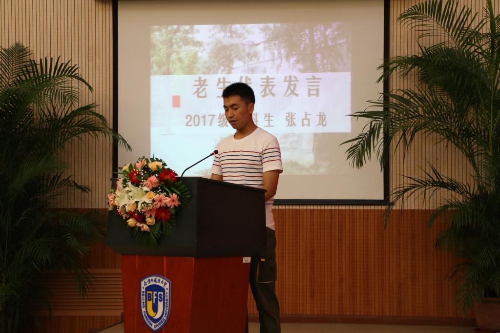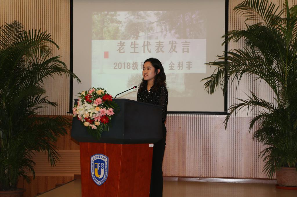 随后,老生代表2018级研究生金羽菲、2017级本科生张占龙;新生代表2019级本科生魏子淮相继发言,从大学努力方向和国家情怀培养的角度分享了自己对北外澳门pg官方电子平台学习生活的感悟和向往。